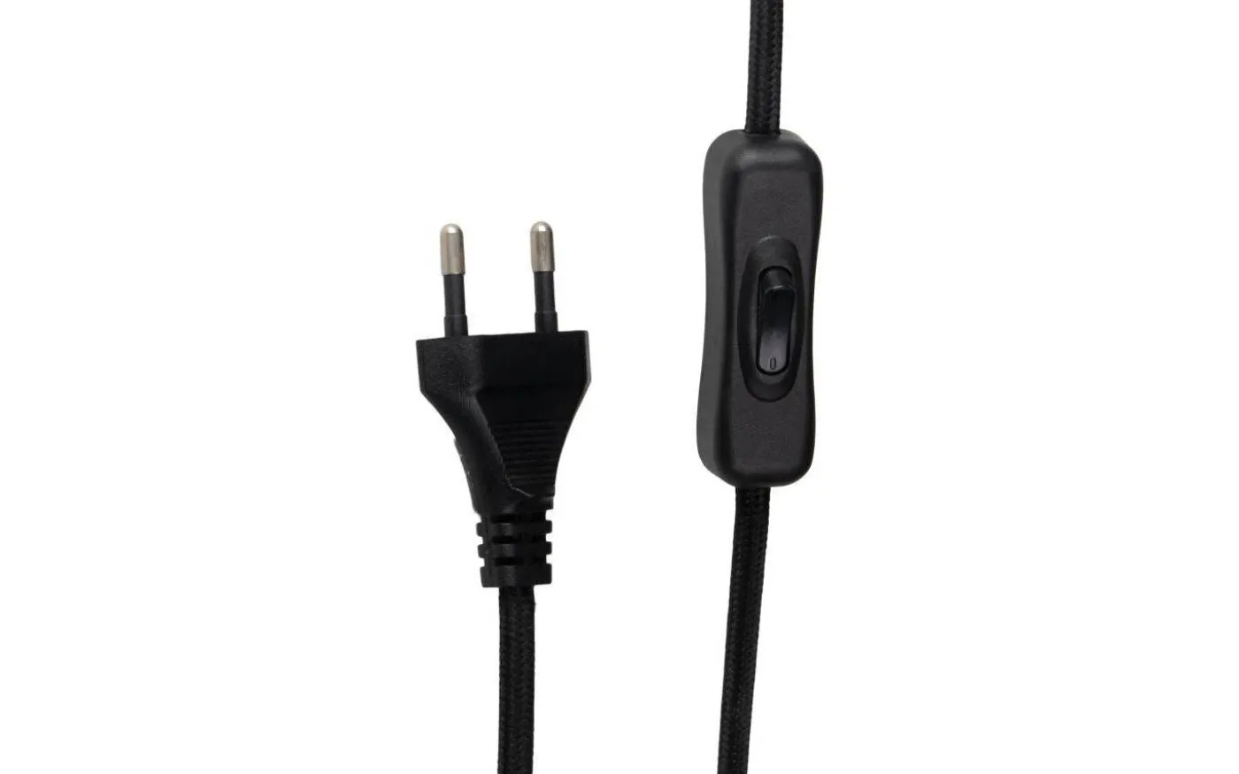 Levereras med en 2m lång textilkabel med strömbrytare och stickkontakt.