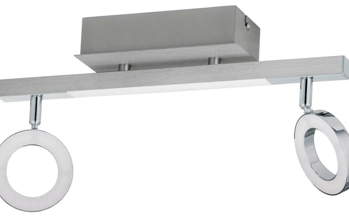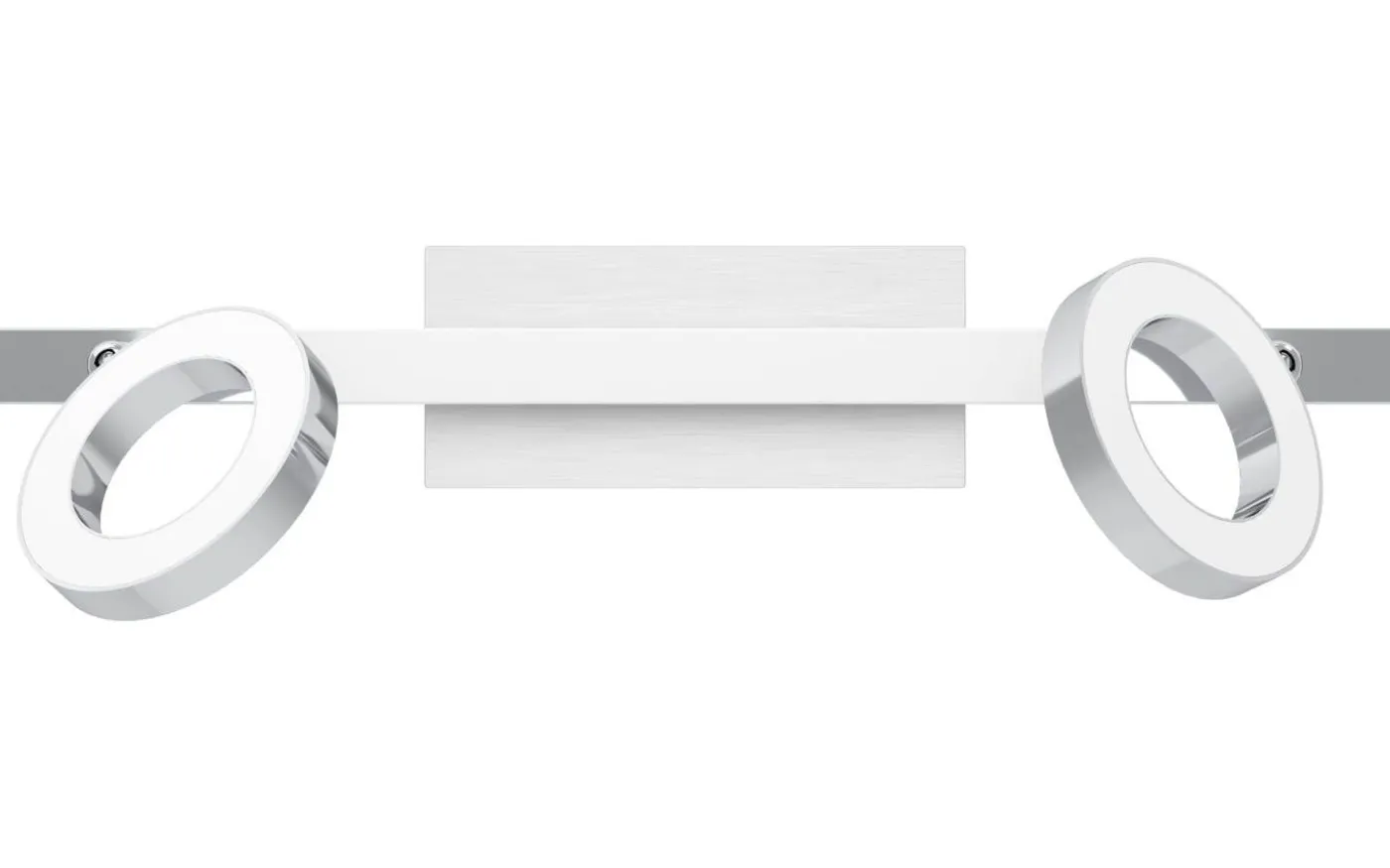 CARDILLIO 1 LED-taklampa är tillverkad av kromfärgad metall och har två ringformade spotlights. Dessutom monteras en långsträckt ljuspanel på vägglampans arm som har en linjär profil. De integrerade lysdioderna under satinplasthöljena ger ett behagligt varmvitt ljus. Takspotlighten smälter sömlöst med den trendiga moderna stilen. Designen har ett vridbart huvud som gör att du kan justera ljuset för att accentuera enskilda delar av rummet, oavsett om det är i köket, vardagsrummet, sovrummet eller hallen.