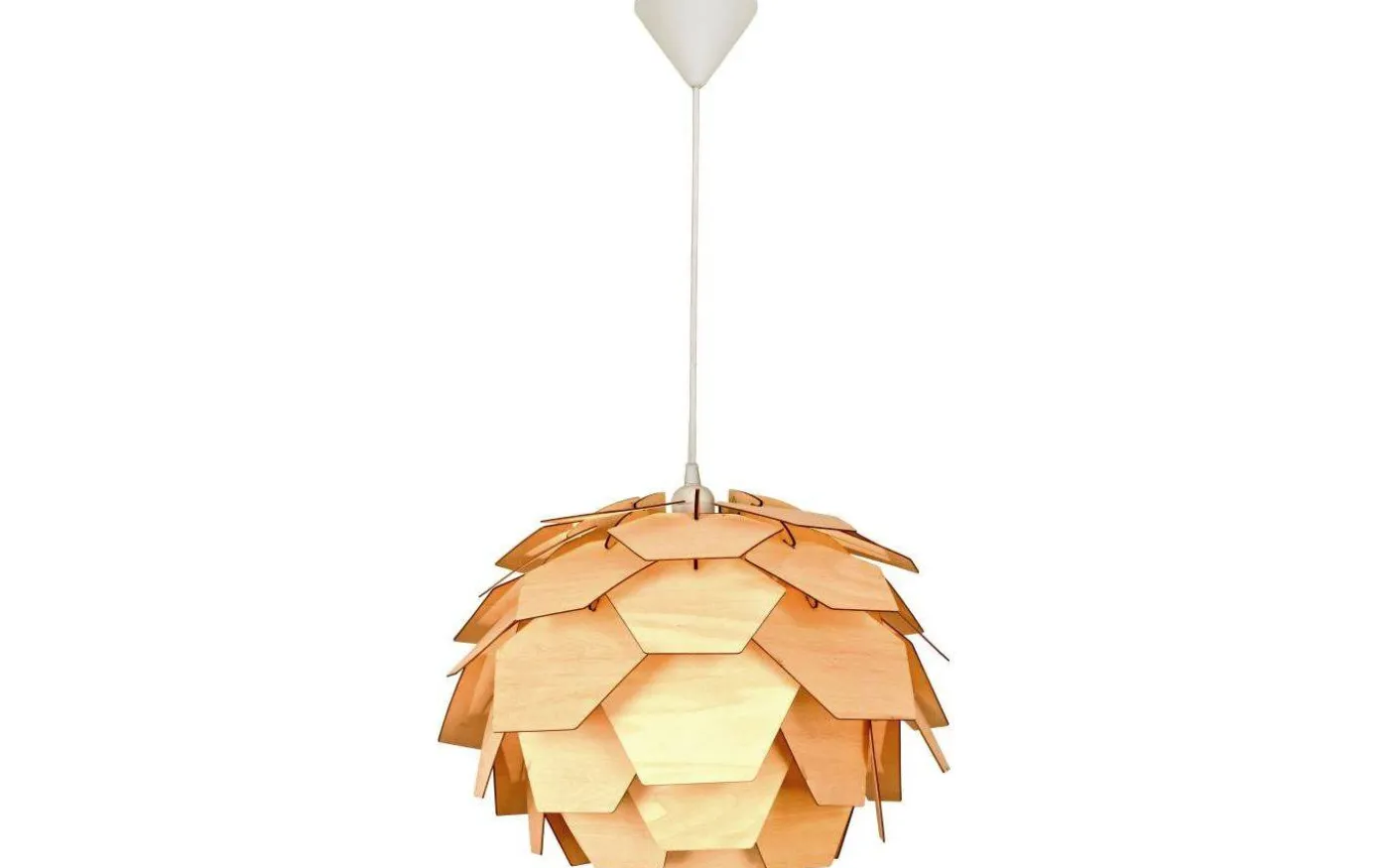Carpatica taklampa i naturfärgad träfanér. Takkoppen är i vit plast för krokupphäng och med kopplingsplint. Max 60W E27, ingår ej. Snygg lampa med en klassisk och tidlös design. Storleken passar bra över såväl matbord som soffbord.