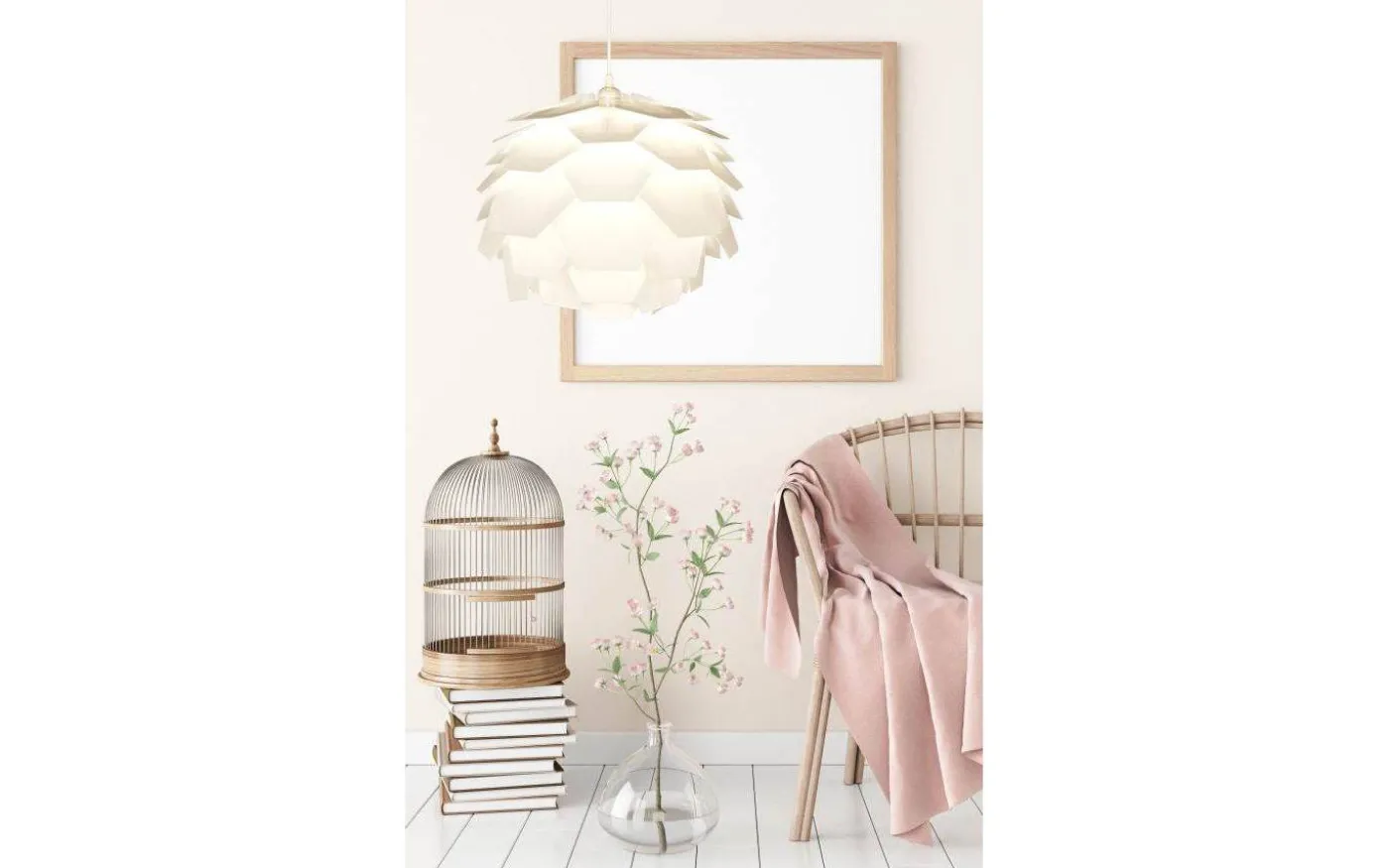 Carpatica taklampa i vit plast. Takkoppen är i vit plast för krokupphäng och med kopplingsplint. Max 60W E27, ingår ej. Snygg lampa med en klassisk och tidlös design. Storleken passar bra över såväl matbord som soffbord.
