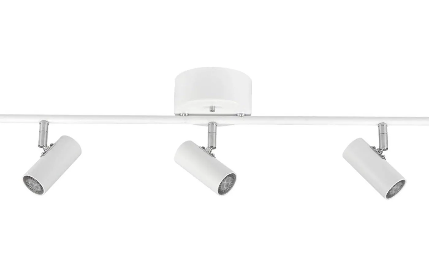 Cato takspotlight passar perfekt i rum och utrymmen där du vill belysa flera olika delar av rummet samtidigt då du enkelt riktar de 3 lamphuvudena i önskad riktning. Taklampan är tillverkad av metall med en vit finish och detaljer i krom,