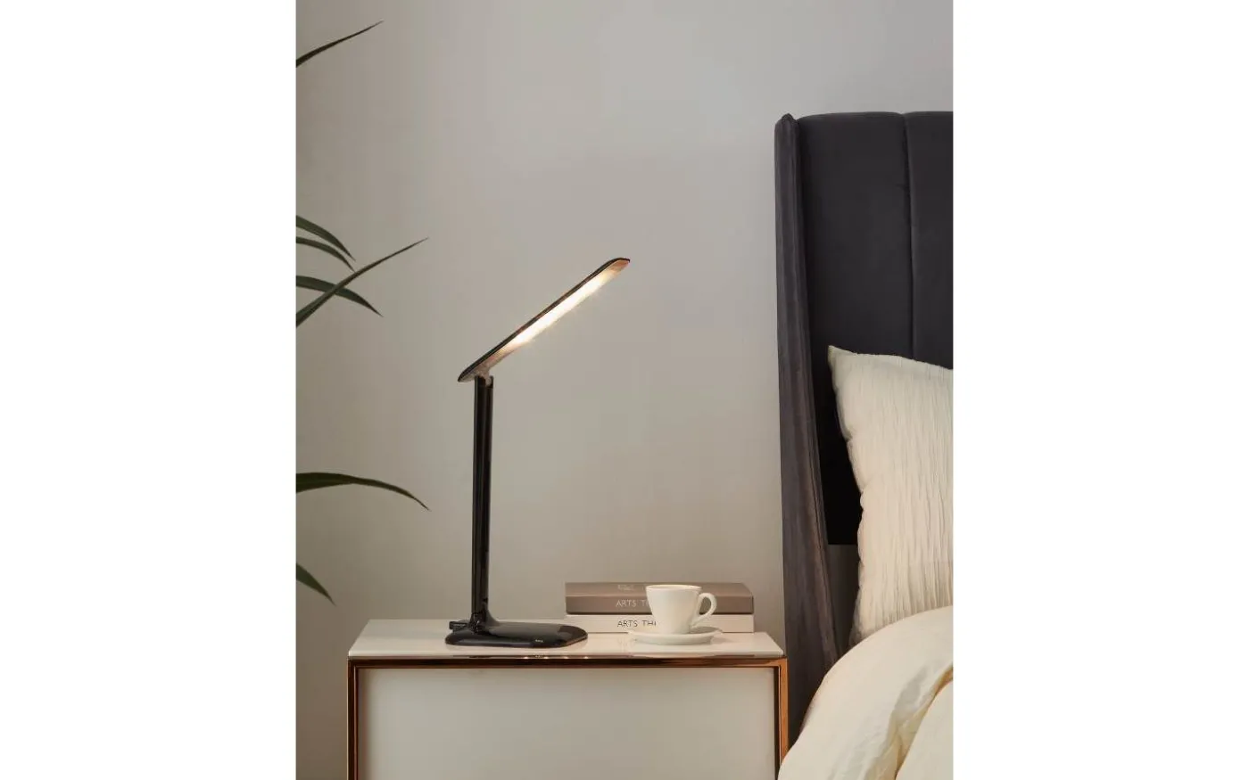 CAUPO LED-bordslampan är gjord av svart metall och plast och har en justerbar nacke och huvud. De integrerade lysdioderna ger ett behagligt ljus som kan justeras efter behov. Du kan välja mellan varmvitt, neutralvitt och kallvitt ljus. Skrivbordslampan tänds och släcks genom att trycka på ”touch me”-zonen, som kan justera ljusstyrkan. Med sin minimalistiska design smälter den klassiska skrivbordslampan sömlöst med moderna interiörer och är ett praktiskt, måste-ha-objekt för din arbetsyta, oavsett om det är på skrivbordet på ditt kontor eller ditt hemmakontor.
