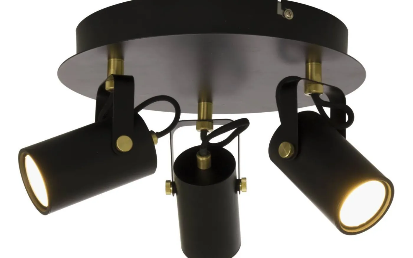 Cilindro spotlight i svartlackerad metall med detaljer imatt mässing. 3 justerbara spotlights i rad med LED -ljuskälla som ger behagligt varmt vitt ljus. Kan dimmas. Lampan är monterad med bygelfäste och kopplingsplint.