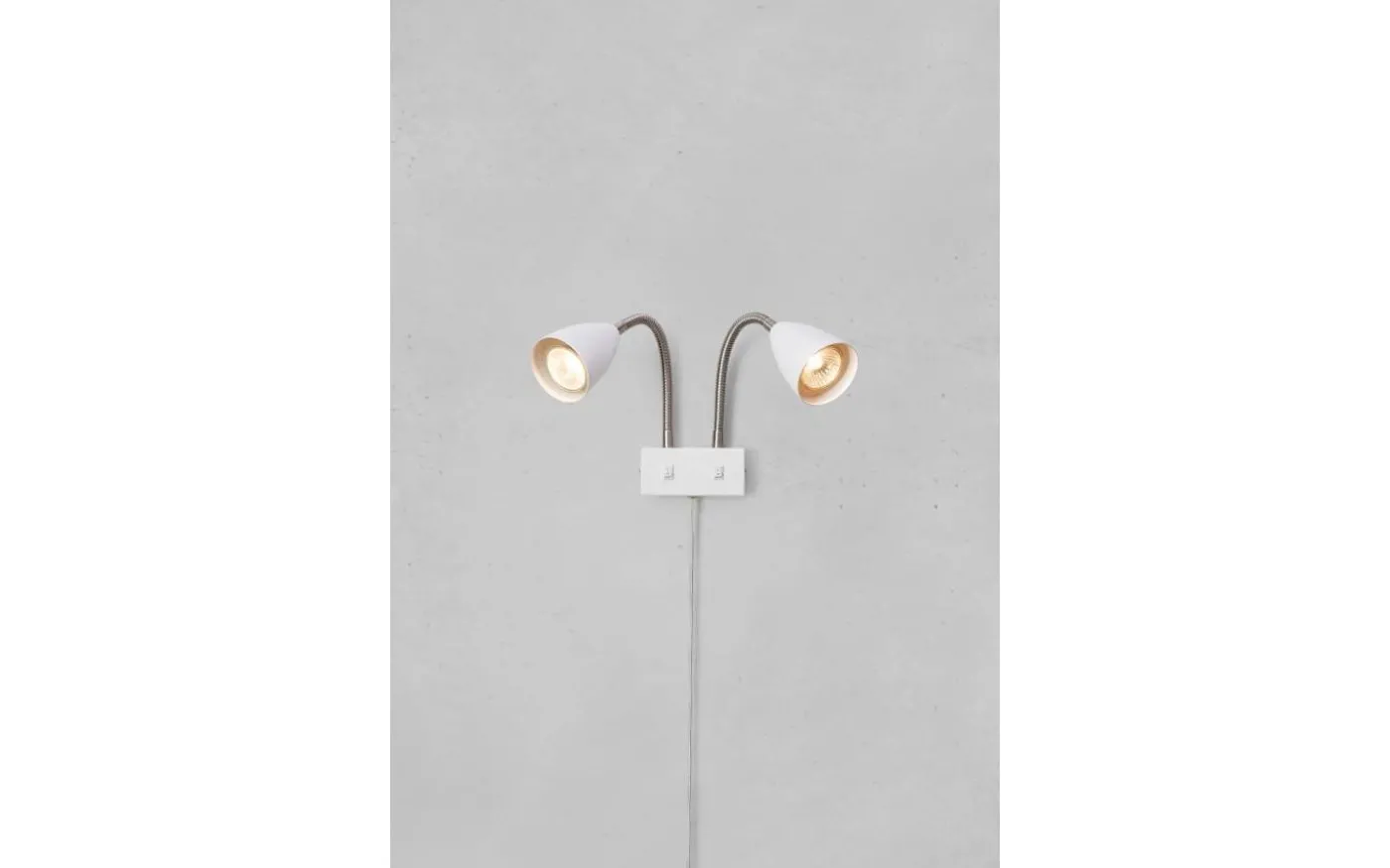 Ciro flex dubbel vägglampa från Markslöjd, har en design som både är snygg och funktionell. Vägglampan är av metall med en matt finish och har en flexarm i stål. Flexarmen gör att du enkelt kan vinkla och rikta ljuset efter eget önskemål och behov.