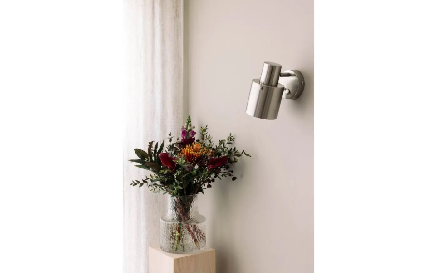 Clark från Globen Lighting är en enkel vägglampa i borstad stål och har en retroinspirerad design.