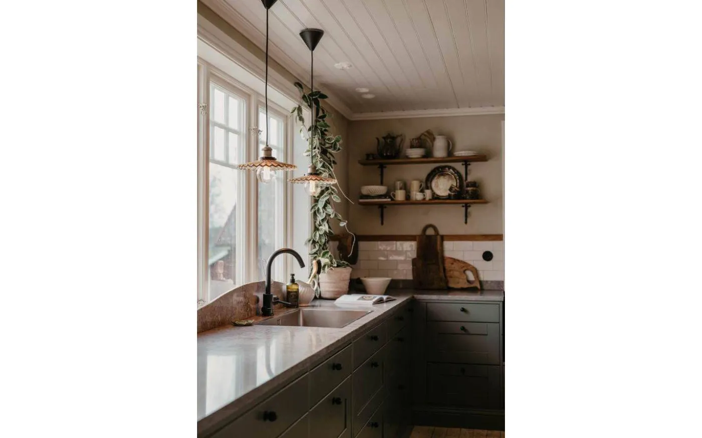 Cobbler från Globen Lighting är en modern variant av klassiska skomakarlampan med sin vågiga glasskärm, sockel i svart och antikmässing och en snygg svart textilkabel.