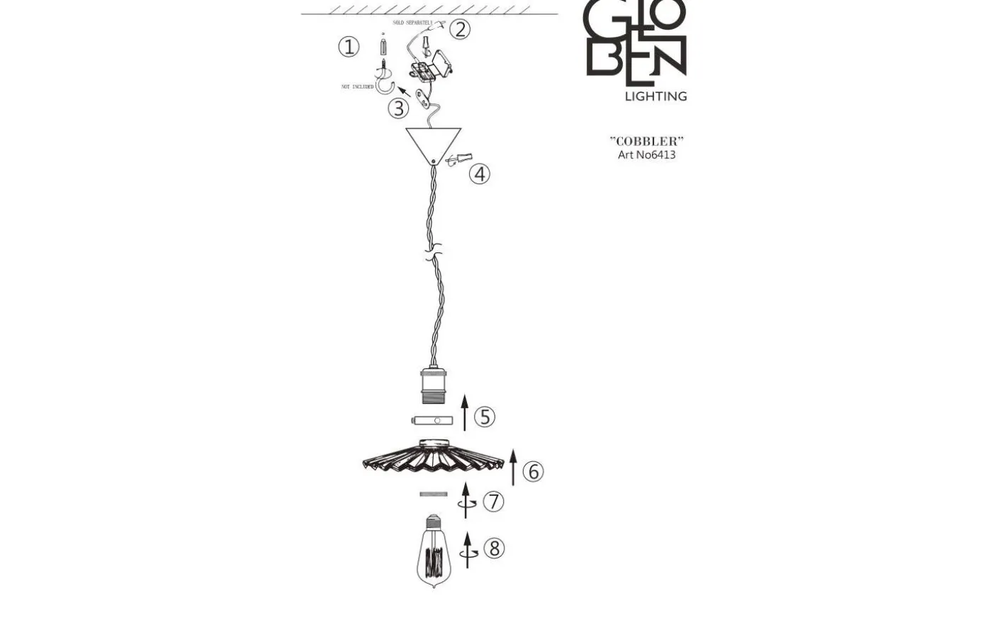 Cobbler från Globen Lighting är en modern variant av klassiska skomakarlampan med sin vågiga glasskärm, sockel i svart och antikmässing och en snygg svart textilkabel.