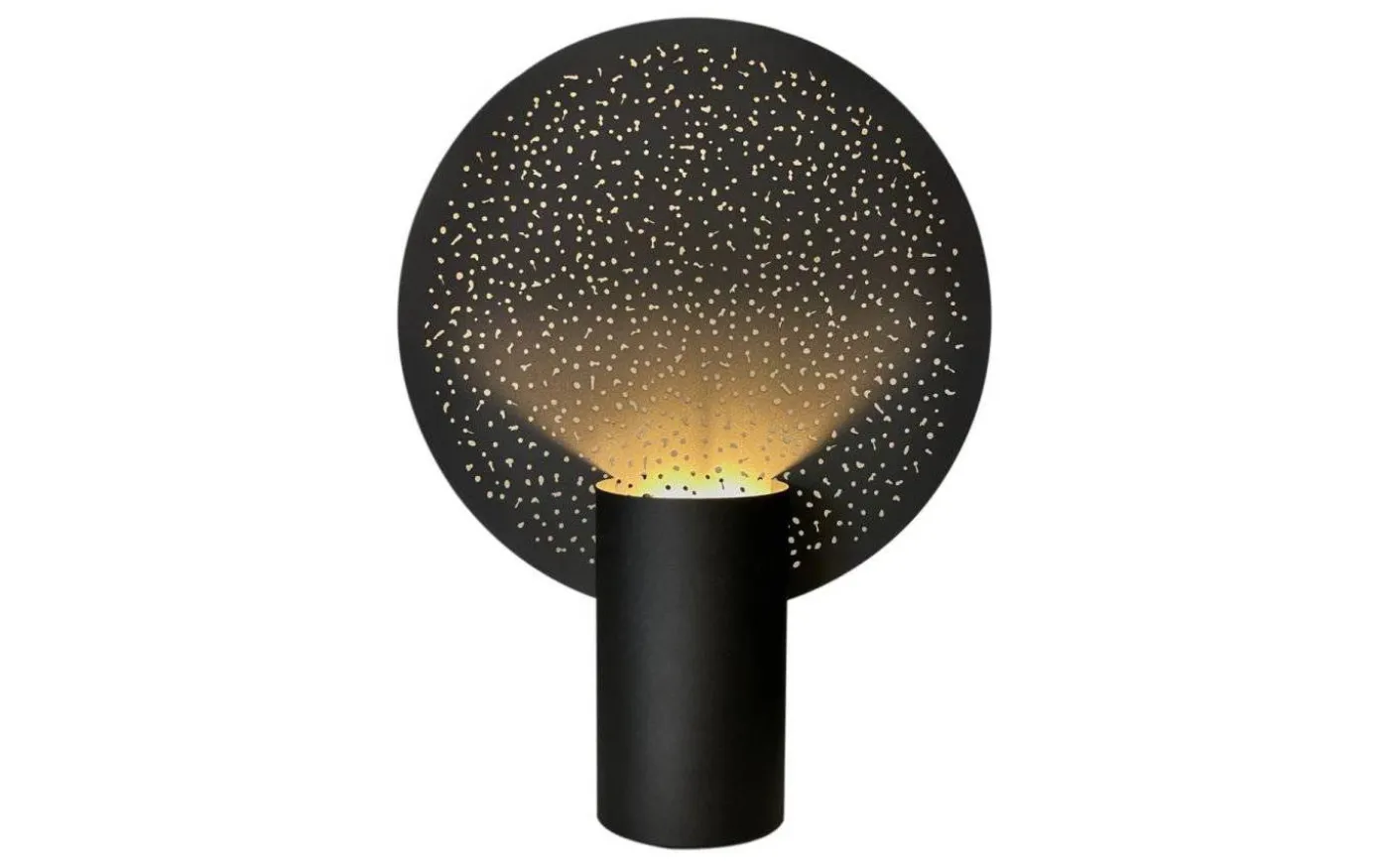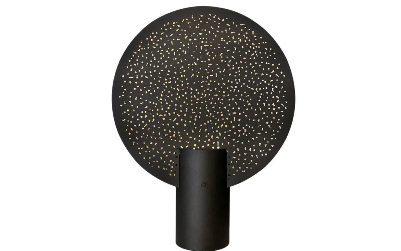 Bordslampan Colby XL, By Rydéns, är en stilren bordslampa i metall med en härligt mattsvart finish. Foten är cylinderformad och i denna placeras ljuskällan. Ljuset strålas sedan uppåt och reflekteras mot den runda metallplattan, som dessutom är full med små, fina hål som hjälper till att skapa en helt otrolig ljusbild. Plattan är placerad i fotens bakkant så du kan enkelt välja själv vilket håll du vill placera lampan på, om du vill att luset ska lysa upp framför eller bakom plattan.
