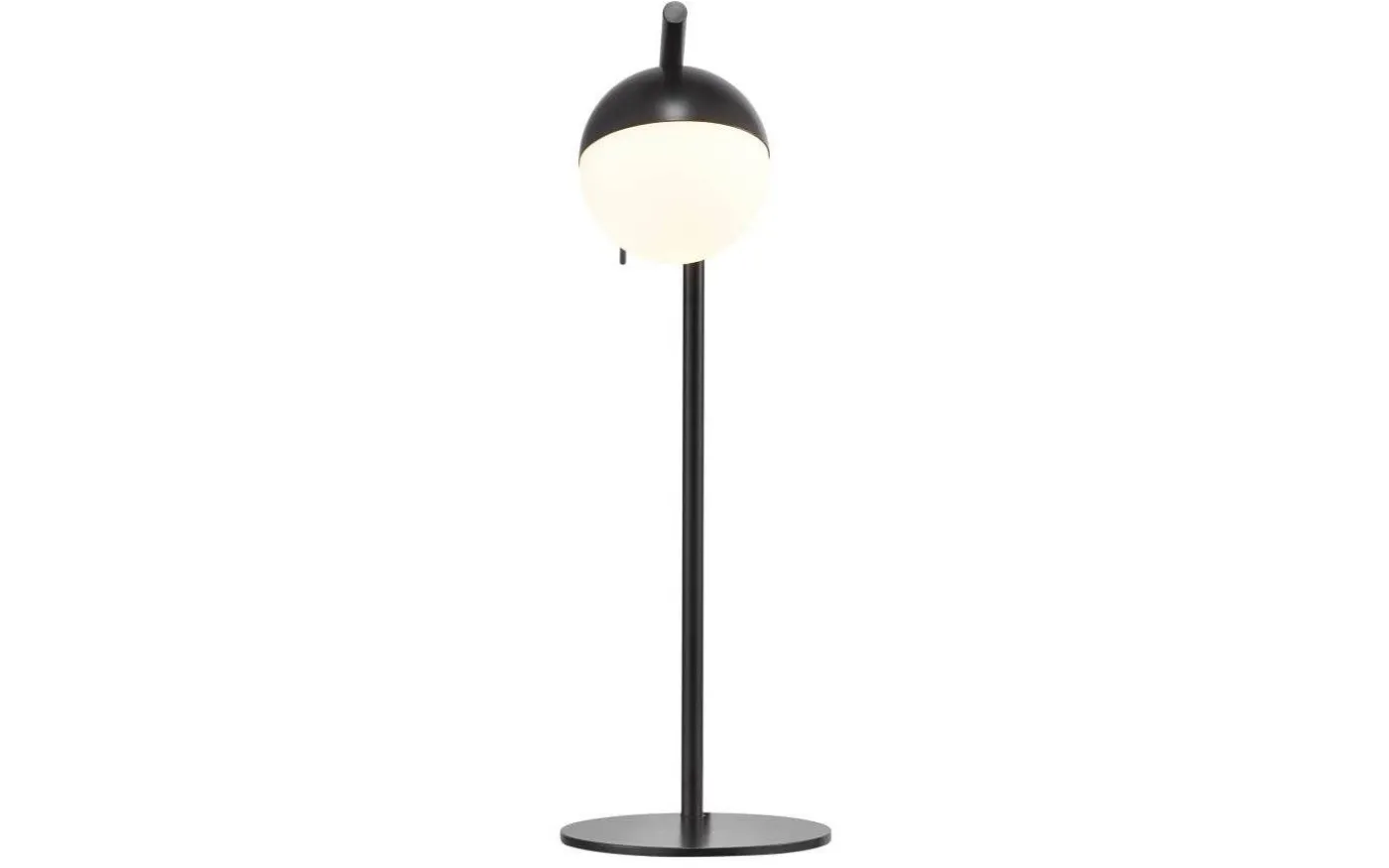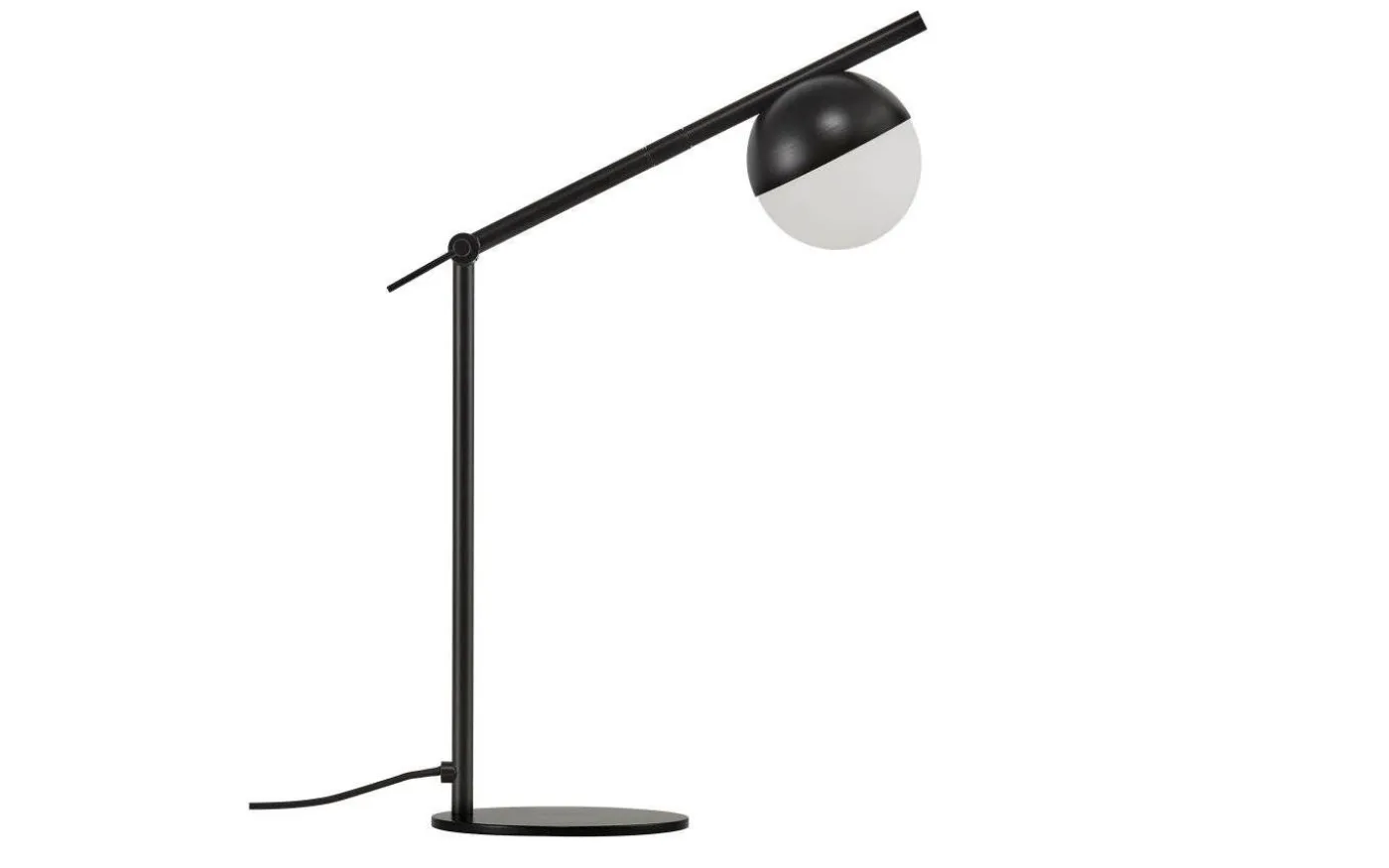 Bordslampan Contina har en stilren design. Bordslampans kombination av metallsvart och opalglas skapar ett glamoröst och modernt uttryck. Glaskulan ger ett mjukt och härligt bländfritt ljus i rummet.