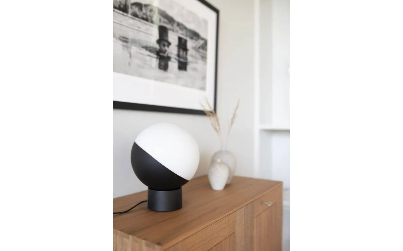Härliga Contur bordslampa från Globen Lighting är designad av GL Design Studio. Bordslampan är gjord av ett mattvitt glas där halva glaset är laserat i en mattsvart finish. En grafisk bordslampa som passar utmärkt i en modern miljö eller för den som önskar en modern kontrast.