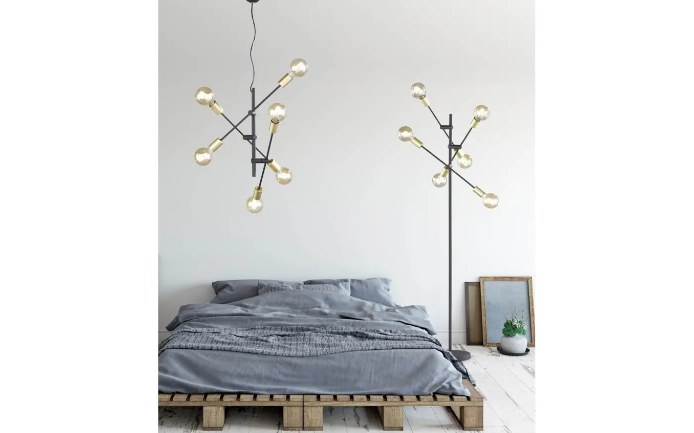 Okonventionell, kreativ och designinriktad. Minimalistiska armaturer som de i CROSS-serien sätter spännande accenter och sätter rätt ljus i rummen. Valet av färger och former skapar kontraster – smart kombinerade skapar de en mysig detalj och en elegant atmosfär. Armaturen är ett smakfullt tillskott till nästan alla interiörer och kan med en diameter på 57 cm placeras i större vardagsrum eller entréer. För ett harmoniskt utseende rekommenderar vi att använda en glödtrådsljuskälla, eftersom du har direkt utsikt över ljuskällan. Den enkla, raka metallramen i mattsvart med bronsfärgade lamphållare skapar ett harmoniskt helhetsintryck. För modern och pålitlig belysning rekommenderas att använda en LED-lampa. Den erbjuder hög ljuskvalitet, är mångsidig och övertygar med jämn belysning. Dess långa livslängd och låga värmeutveckling gör den till det perfekta valet för en mängd olika användningsområden. Ljuskälla: exklusiv 6x E27 · max. 40W. Extra information: Takmontering, IP20, Lampa(or) ingår ej, Vridbar