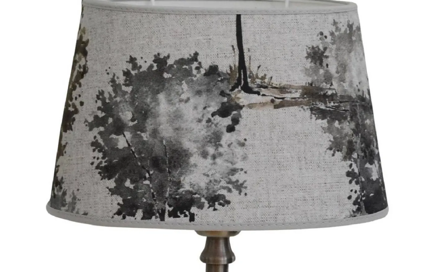 Daga lampskärm från välkända Hallbergs Lighting är en vacker oval lampskärm i mönstrad textil med kantband i ovan- och nederkant.