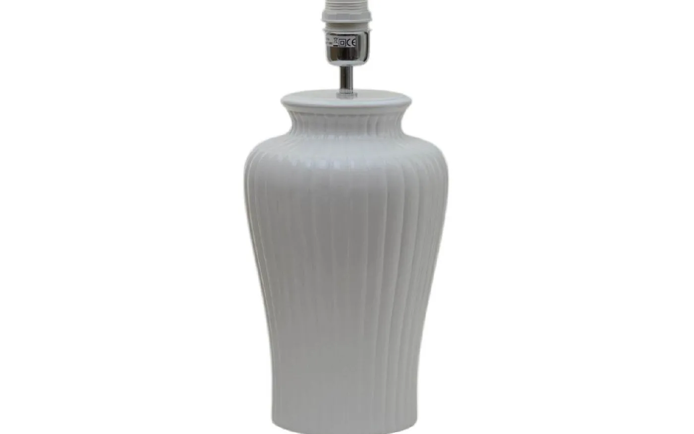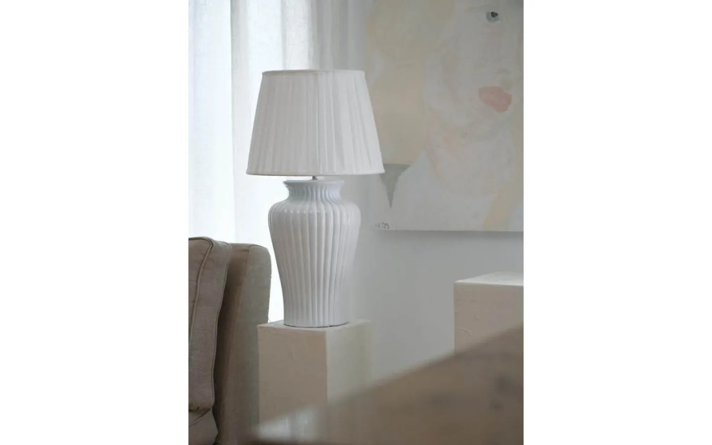 Dahlia Lampfot 50 cm i färgen Glossy White. En tidlös lampfot i keramik med glansig yta och eleganta räfflade detaljer. Lätt att kombinera med olika lampskärmar för att skapa en stilren och klassisk belysning i hemmet.