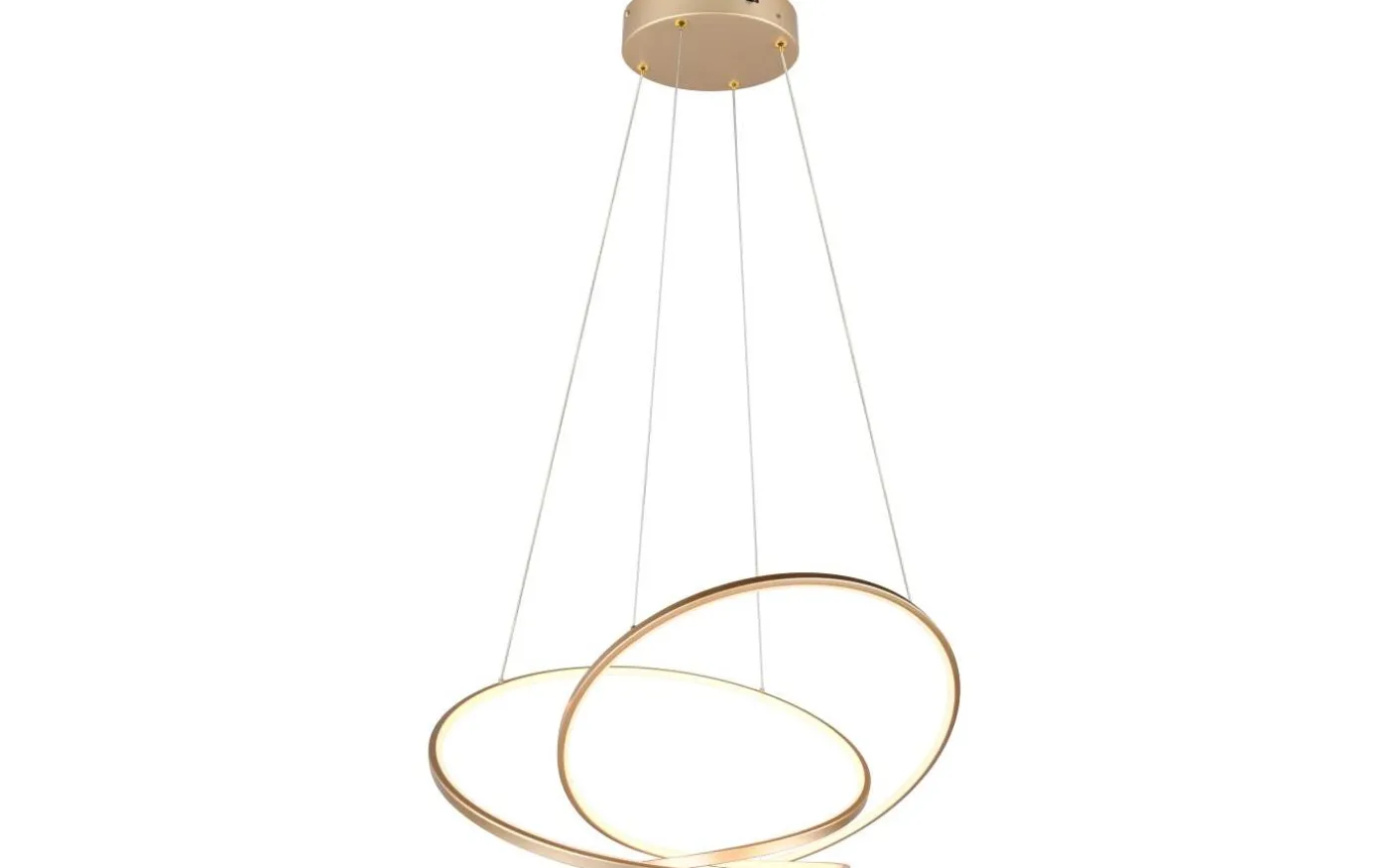 DARVIN pendellampa är ett verkligt blickfång i alla vardagsrum eller matsal. Dess unika design skapar en konstfullt böjd ljusslinga och sätter nya standarder. Den högkvalitativa LED-listen förstärker inte bara den estetiska effekten, utan ger också effektiv och behaglig belysning. Ljusfärg och ljusstyrka kan bekvämt och steglöst justeras med en vanlig ljusströmbrytare för att skapa optimal rumsbelysning beroende på behov eller tid på dagen. Denna framgångsrika kombination av kreativ design och modern ljusteknik gör DARVIN till ett mångsidigt element som både sätter visuella accenter och uppfyller de högsta funktionella kraven. Med sitt eleganta guldfärgade utseende smälter armaturen tidlöst och modernt in i alla miljöer och bidrar även till energieffektivitet. Dessutom har armaturerna modern LED-teknik, vilket står för hög ljuskvalitet. LED-ljuskällor kännetecknas av lång livslängd och låg värmeutveckling. Ljuskälla: inklusive 1x SMD, 52W · 1x 6700lm, 2300+3000+4000K. Extra information: Justerbar i höjd, Justerbar ljusfärg, Takmontering, Färger direkt justerbara på lampan, IP20, Ej lämplig för extern dimmer, Dimbar via strömbrytare