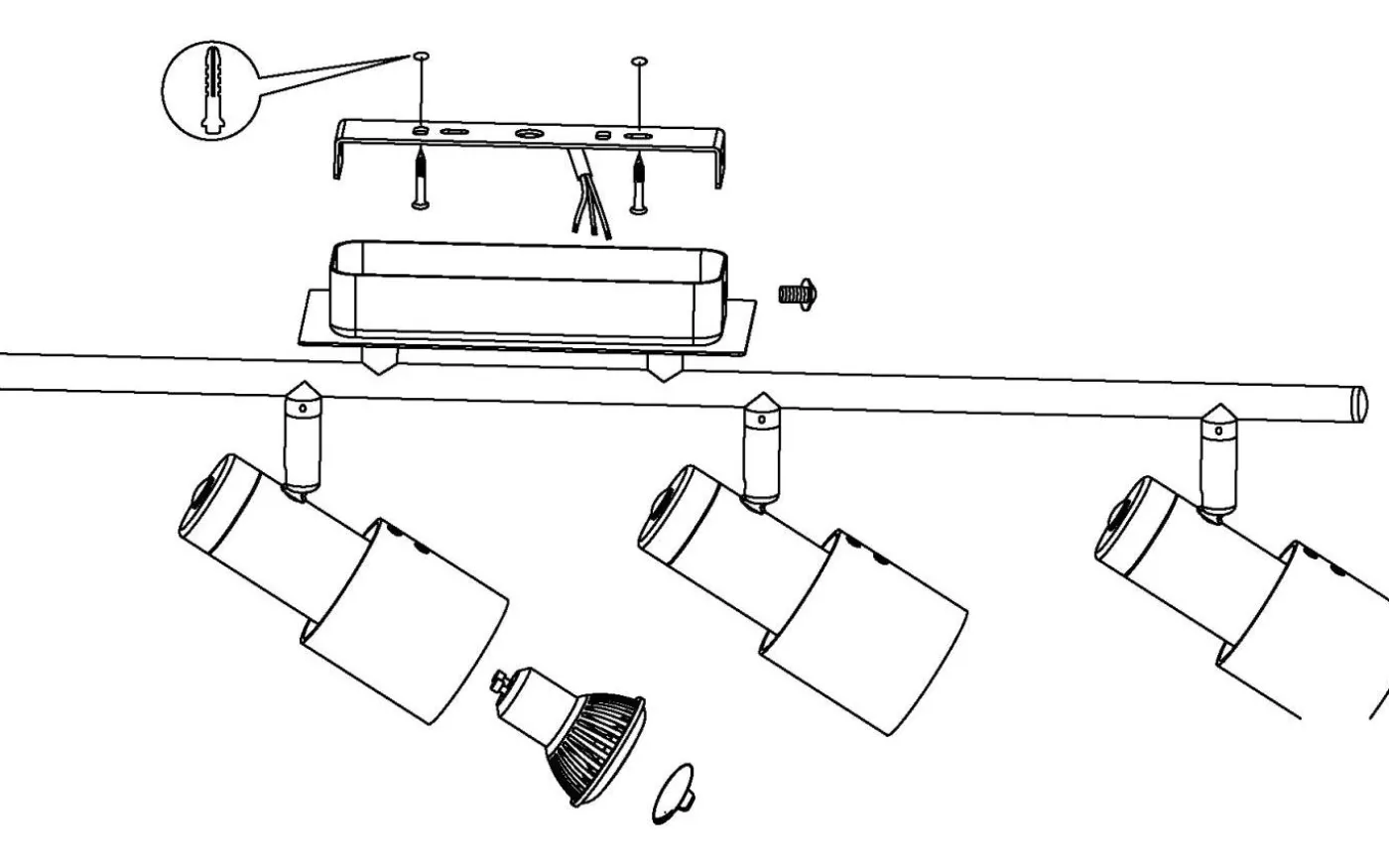 DAVIDA LED-taklampan har en linjär metallkropp i vit och krom finish med fyra justerbara runda spotlights. Takspotlighten har en modern design och har vridbara huvuden som gör att du kan justera ljuset för att accentuera enskilda delar av rummet, oavsett om det är i köket, vardagsrummet, sovrummet eller hallen. Produkten inkluderar de avbildade GU10-LED-glödlamporna, som ger ett behagligt varmvitt ljus.