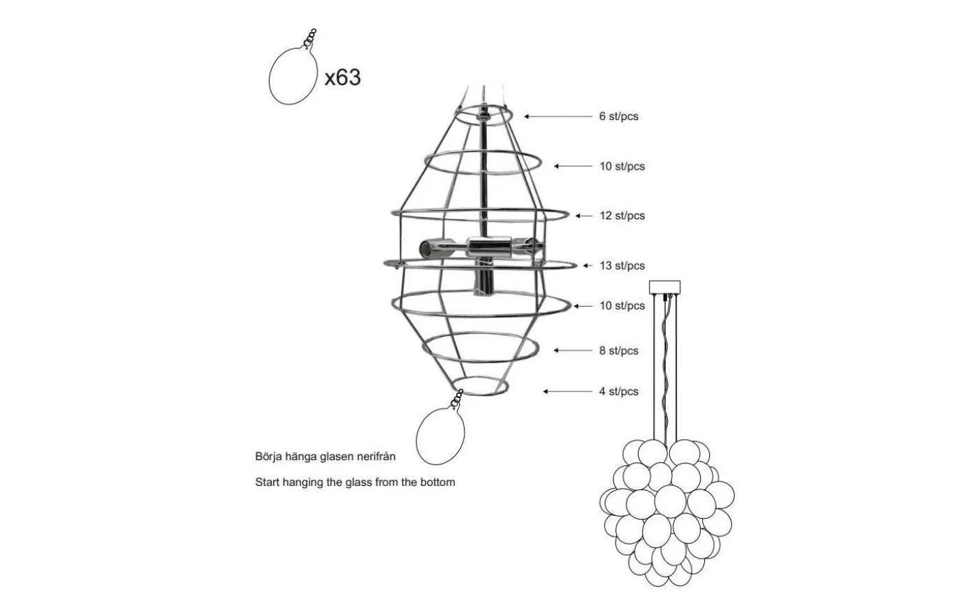 Fina Deluxe från By Rydéns är en fantastisk, exklusiv taklampa bestående av 63 stycken skira glasglober som sprider en fantastisk ljusbild. Denna taklampa skapar verkligen ett utropstecken i ditt hem och blir en exklusiv inredningsdetalj som ger ditt hem det lilla extra.
