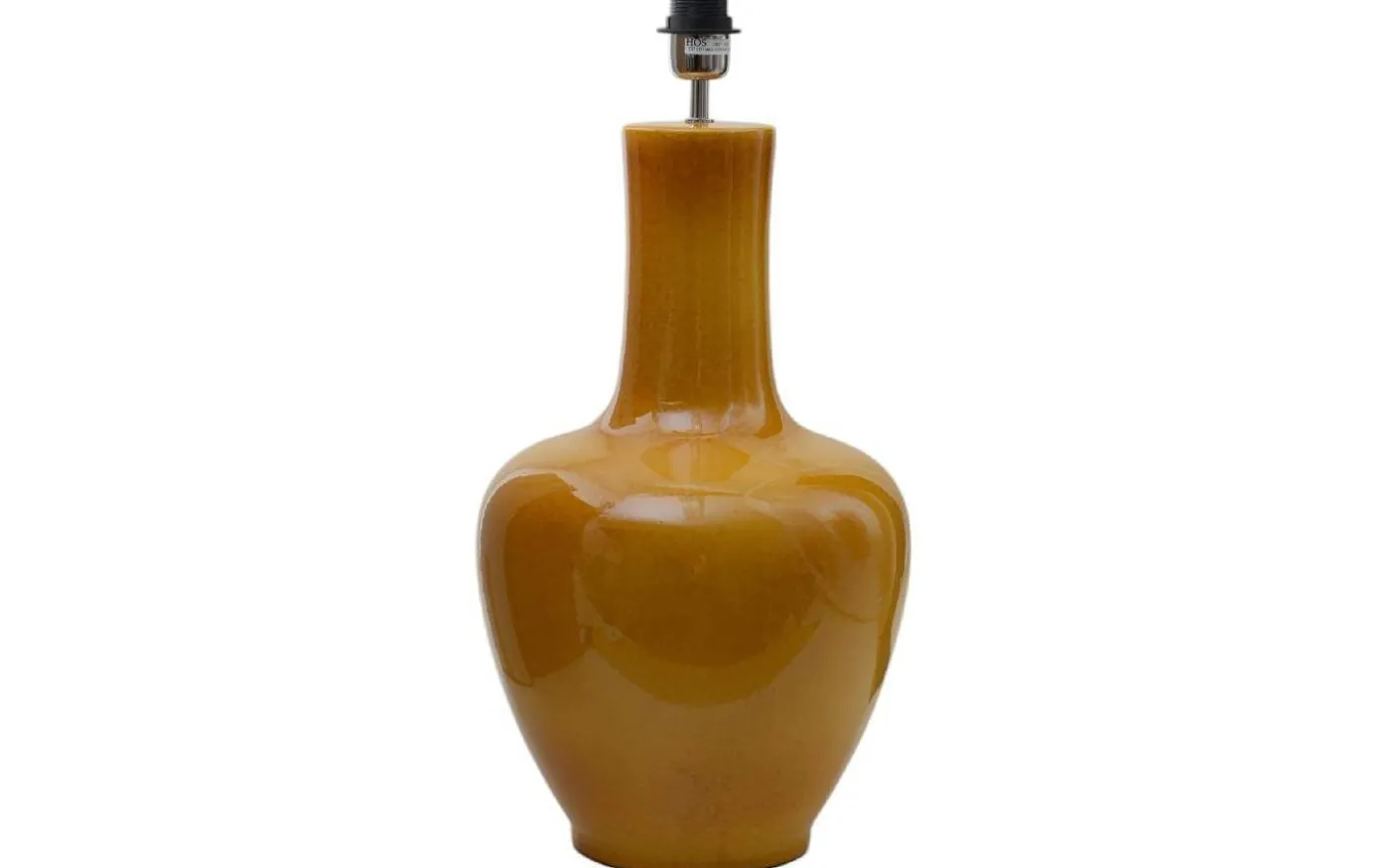 Dilbar Lampfot 54 cm i färgen Mustard. En vacker lampfot i keramik med glansig yta och mjukt rundad form. Den varma senapsgula tonen ger ett elegant uttryck och passar perfekt tillsammans med en lampskärm för att skapa en personlig bordslampa.