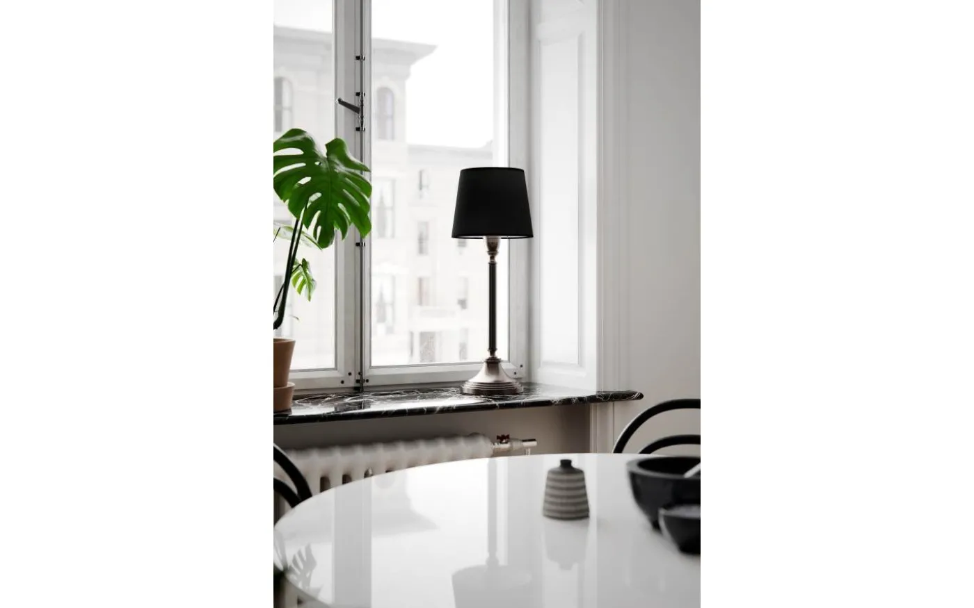 Upplev elegansen hos Dinant bordslampa, en harmonisk förening av modern design och klassiskt hantverk. Den svarta satinfinishen på lampans fot är smakfullt accentuerad med konstläder och en stilfull vit dekorsöm, vilket ger en sofistikerad touch till varje rum. Välj mellan en svart eller vit bomullsskärm för att komplettera din inredning perfekt. Med en höjd på 60 cm och en skärmdiameter på 22 cm (18 cm hög) passar Dinant idealiskt på nattduksbordet eller sidobordet för att skapa en behaglig belysning och en stilfull atmosfär. Lampan använder en E27-ljuskälla med max 8W LED, vilket ger både effektivitet och estetik. Dinant är enkel att placera och ger en touch av raffinerad elegans till ditt hem.