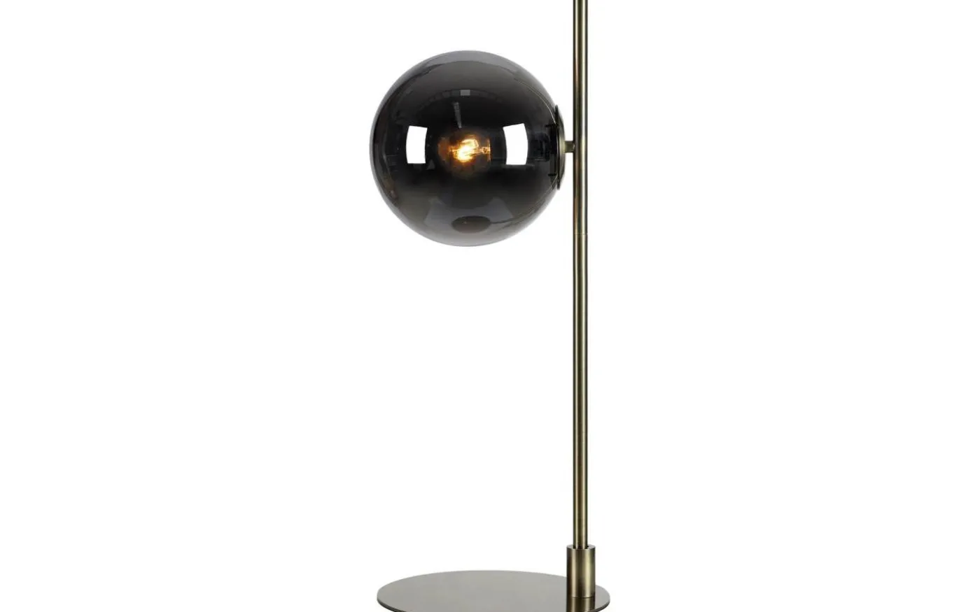 Bordslampa med rökfärgad glasskärm och antikfärgad fot. Snygg på skrivbordet, både på kontor och i barnrum.