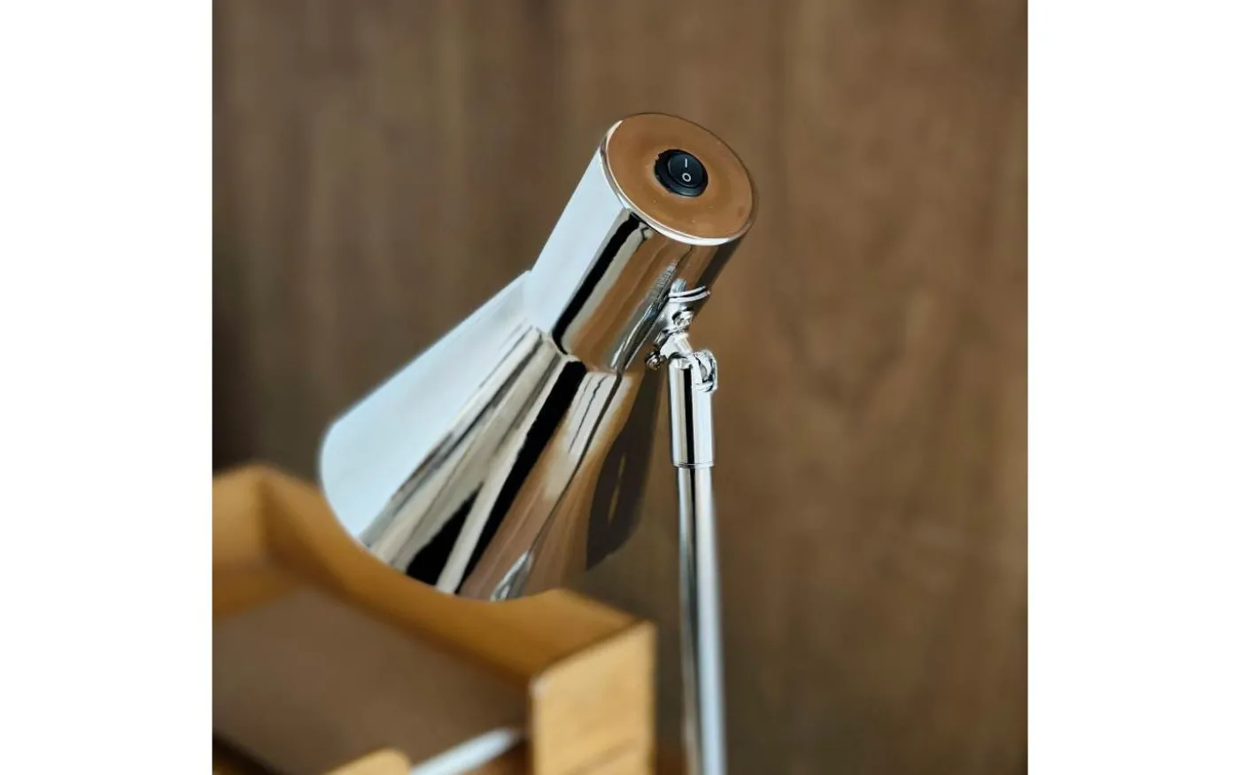 DL12 skrivbordslampa från välkända Dyberg Larsen är en modern och tidlös bordslampa tillverkad i kromfärgad metall.