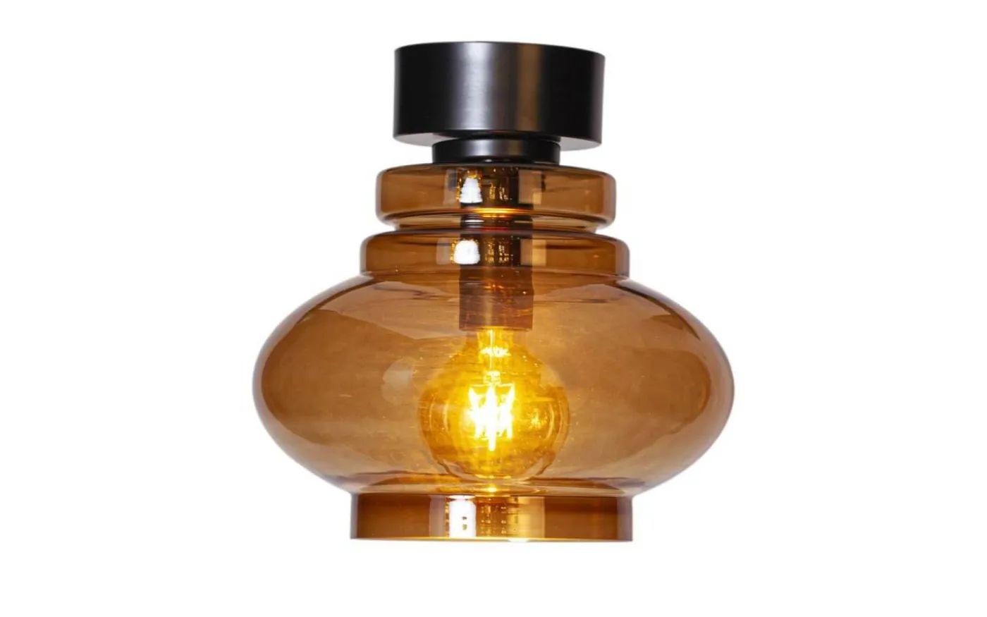 Fina Dolores från By Rydéns är en plafond i konjakfärgat glas med mattsvarta detaljer. Den runda och kurviga formen ger Dolores ett uttryck om elegans men också en härlig retrokänsla.