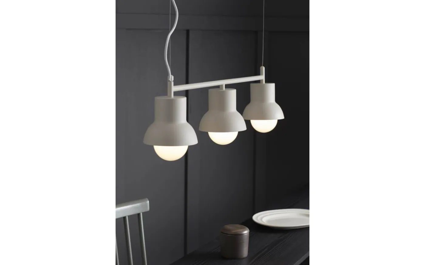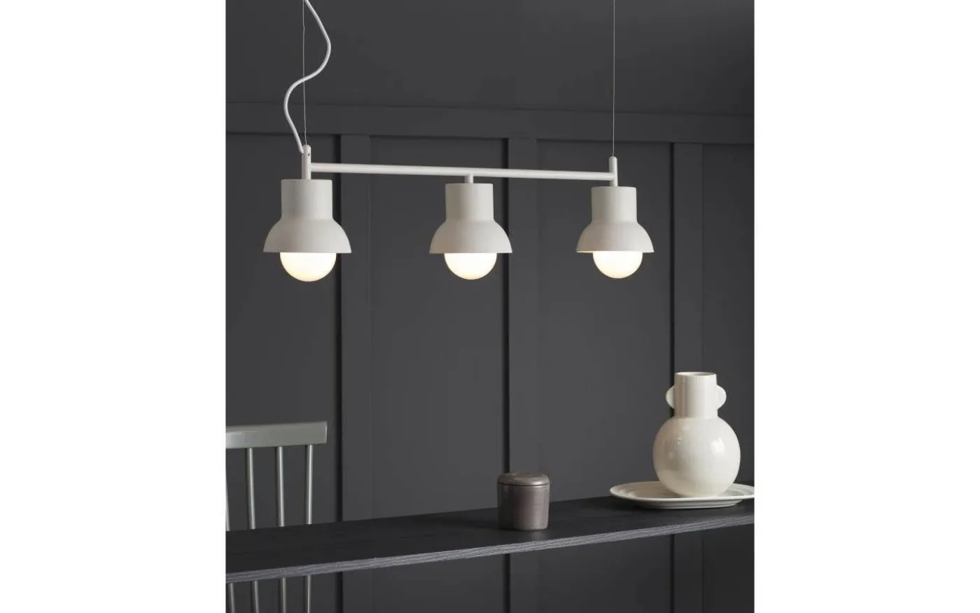 Trendsäkra taklampan Down från välkända Co Bankeryd, är en avlång taklampa med tre lamphållare med plats för valfria ljuskällor med E27-sockel. Down är gjord i metall och har en snygg, ljusbeige finish.