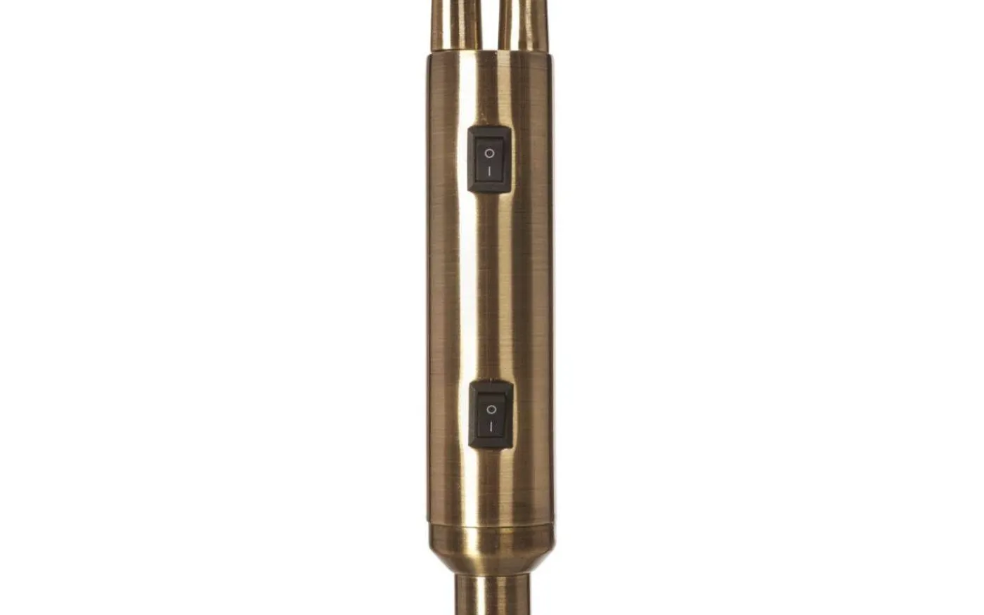 Duett Golvlampa, från Cottex, är en stilren och klassisk golvlampa med en stomme i mässingsfärgad metall med antik finish och två vita skärmar i textil.