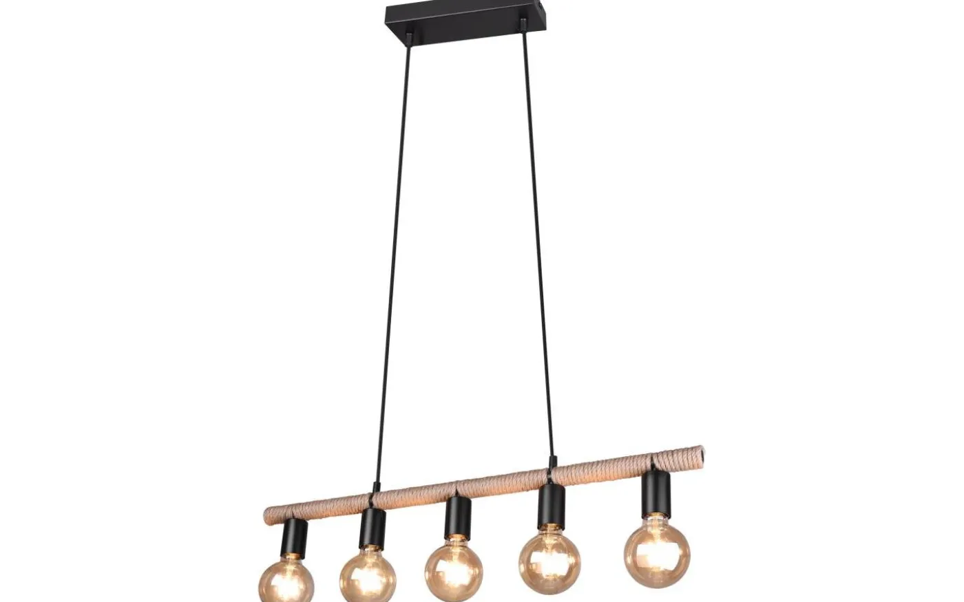 Vintage, bohemisk eller industriell. Naturliga färger och material är just nu på modet. Den dekorativa kombinationen av sisal och metall skapar en mysig atmosfär och ger ditt hem en individuell charm. Placerad mitt i matsalen ovanför matbordet kommer EINAR pendellampa verkligen till sin rätt och skapar rätt ljusstämning. Den moderna blandningen av mattsvart med det bruna naturmaterialet sisal är helt trendig och kan kombineras på en mängd olika sätt. För energibesparande belysning rekommenderas att använda en LED-lampa. Dessa är ett optimalt alternativ till konventionella halogenlampor och står för hög ljuskvalitet och energibesparingar på upp till 80 %. Dessutom hjälper LED-lampor dig att dra nytta av lång livslängd, låg värmeutveckling och samtidigt skydda miljön. Ljuskälla: exklusiv 5x E27 · max. 40W. Extra information: Justerbar i höjd, Takmontering, IP20, Lampa(or) ingår ej