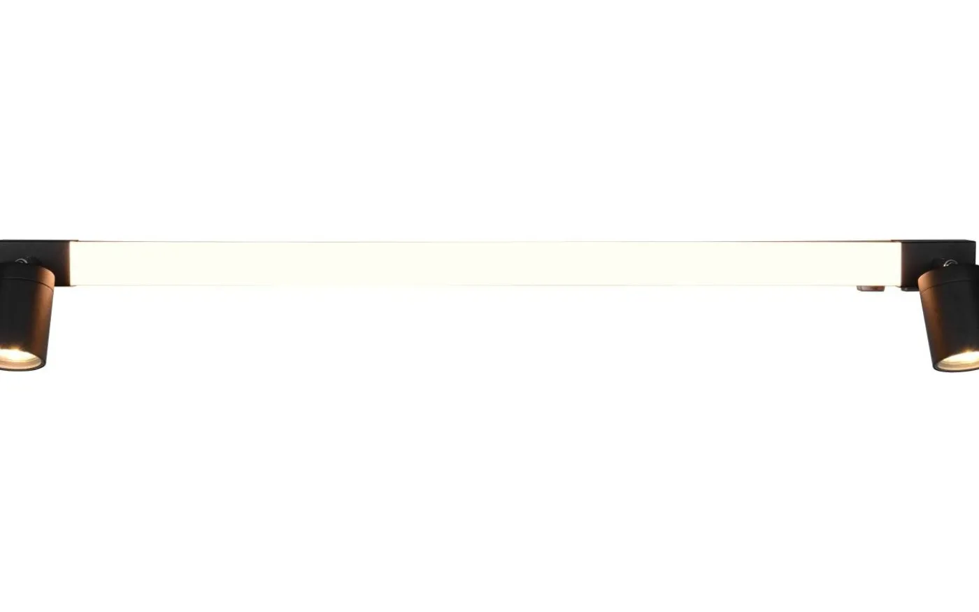 Vägglampan ENRICO är det perfekta valet för alla moderna badrum. Dess eleganta, avlånga design säkerställer en jämn och behaglig belysning. Dessutom är två spotlights monterade på båda sidor av huvudlampan för att ge riktade accenter och optimal belysning. Med en skyddsklassning IP44 är armaturen optimalt skyddad mot stänkvatten och är därför perfekt för fuktiga miljöer. En integrerad strömbrytare gör det möjligt att styra huvudljuskällan och sidospotlighterna separat, så att du flexibelt kan justera belysningen efter dina behov och preferenser. Ljusfärgen kan också justeras individuellt och lampan har en praktisk minnesfunktion. Den svarta matta finishen betonar designens renhet och precision och ger badrummet en touch av lyx och hållbarhet. För modern och pålitlig belysning rekommenderas användning av en LED-lampa. Den erbjuder hög ljuskvalitet, är mångsidig och övertygar med jämn belysning. Dess långa livslängd och låga värmeutveckling gör den till det perfekta valet för en mängd olika användningsområden. Ljuskälla: inklusive 1x SMD, 9W · 1x 1200lm, 2300+3000+4000K. Ljuskälla: 2 st exklusiva 2x GU10 · max. 5W. Extra information: Justerbar ljusfärg, IP44, Lampa(or) ingår ej, Minnesfunktion, Ej lämplig för extern dimmer, Separat omkopplingsbar, Strömbrytare, Väggmontering