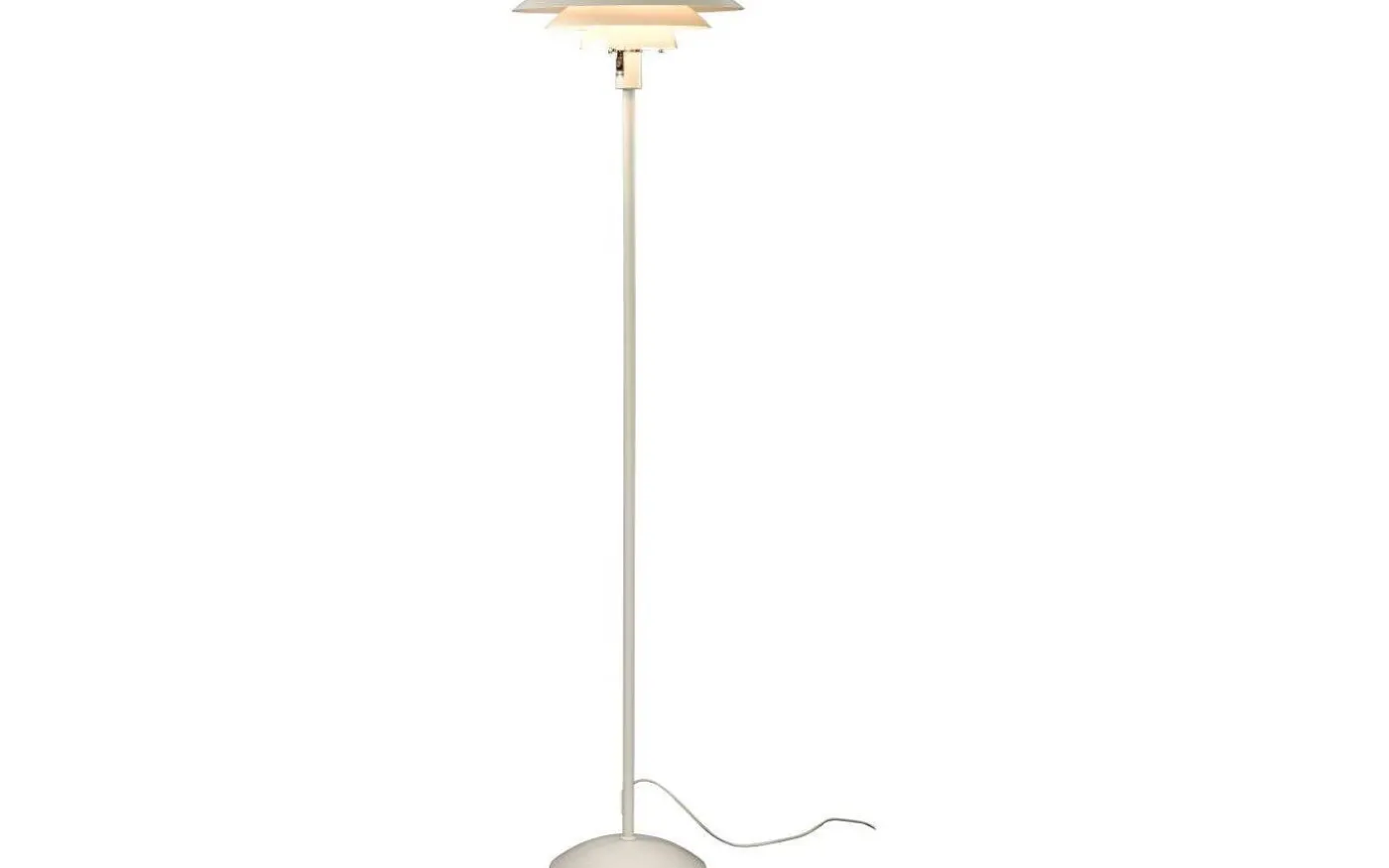 Golvlampan Epsilon har en klassisk design med tre sammansatta skärmar i vitlackerad metall som fördelar ljuset på ett fint sätt och motverkar bländning. Med Epsilon medföljer dubbla uppsättningar dekorringar och knoppar, välj mellan krom eller matt mässing beroende på vad som passar bäst i just ditt hem. Epsilon golvlampa kan även kombineras med andra lampor i Epsilon-familjen.