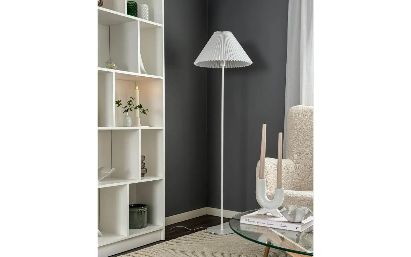 Ester är en stilren golvlampa med minimalistisk design som passar perfekt in i alla moderna hem. Dess eleganta utformning inkluderar en bottenplatta med tre kulformade tassar som ger en luftig känsla till rummet. Lägg till en valfri skärm för att skapa den perfekta belysningen för ditt hemOBS! Skärm säljs separat.