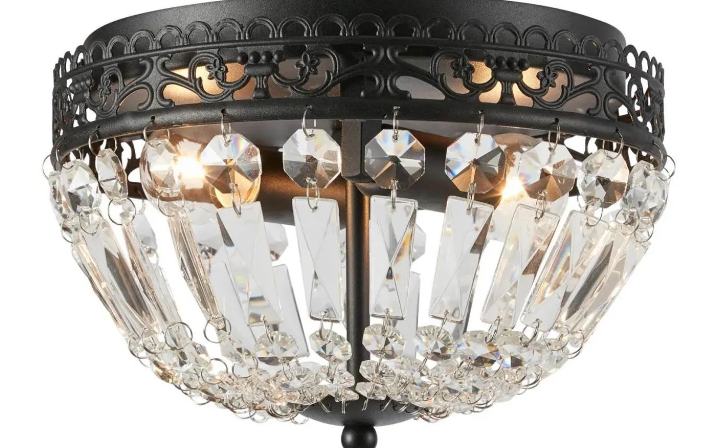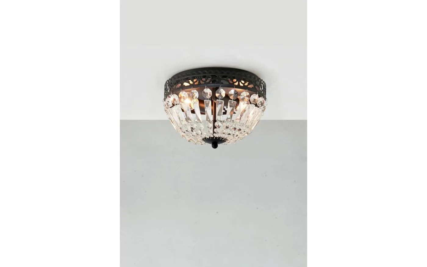 Etienne kristallplafond från Markslöjd kan placeras i de flesta rum och badrum tack vare den praktiska storleken. Den svarta metall basen och de maskinslipade glasprismor ger effektfulla reflektioner i rummet.