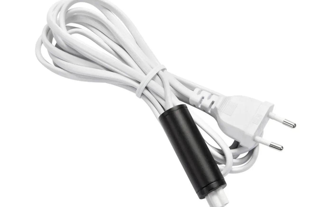 I ena änden av kabeln finns en svart snabbkoppling som du enkelt kopplar in i belysningsskenan. I den andra änden finner du en stickkontakt för vägguttag. På sladden finns en strömbrytare för enkel tändning och släckning.