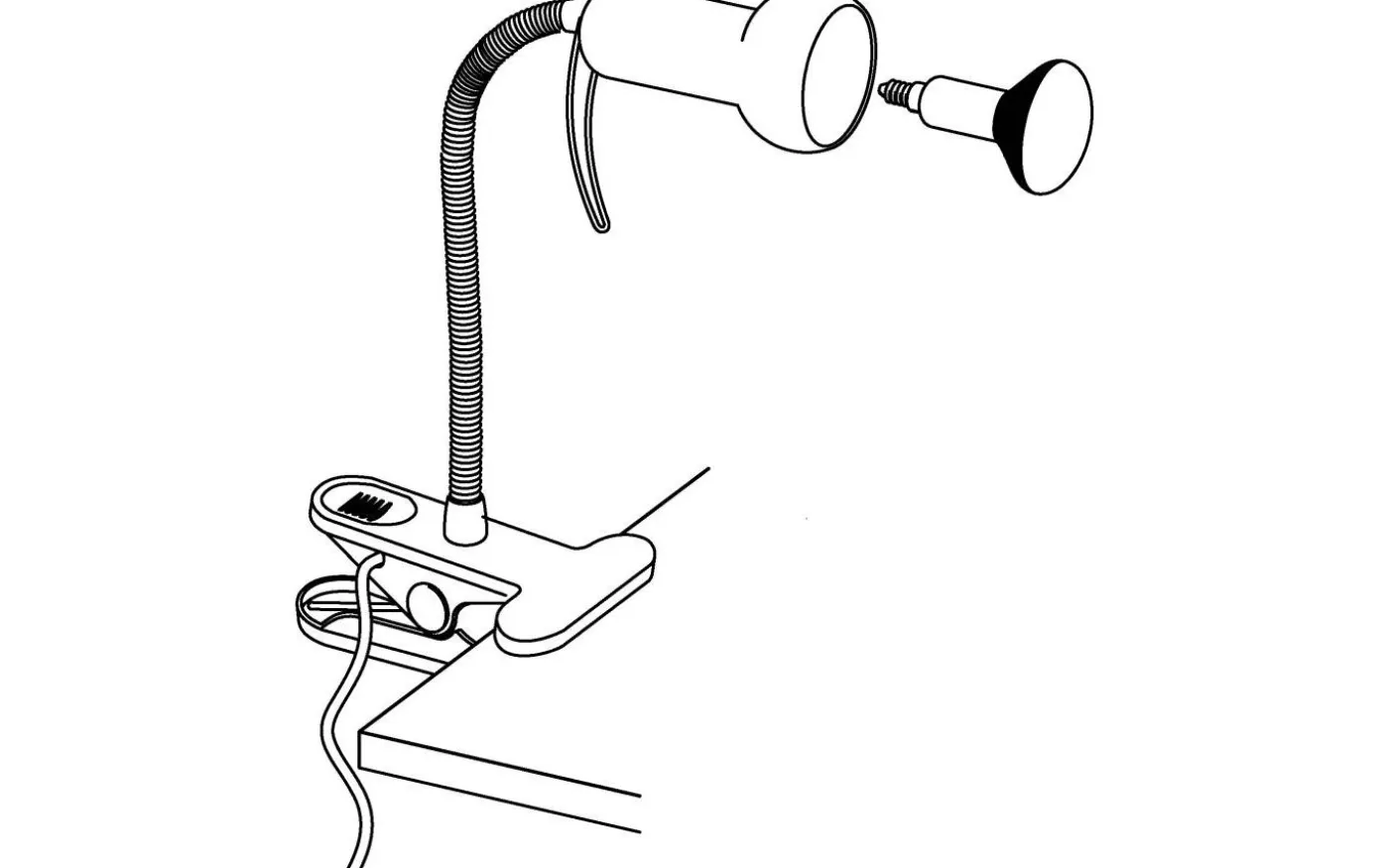 Denna klämarmatur från serien FABIO är gjord av vitt stål och silverplast och manövreras av en kabelbrytare. Den har skyddsisolering och behöver en E14-lampa för att lysa.