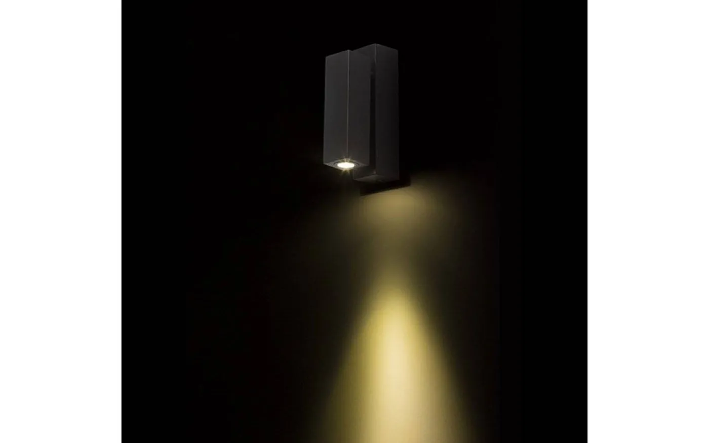 Vägglampa i kantig design med en riktbar inbyggd LED-ljuskälla.