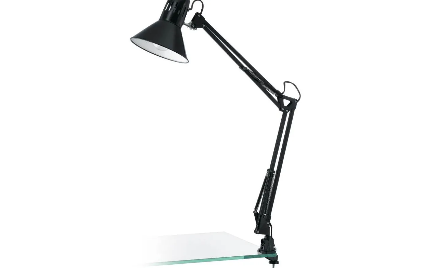 FIRMO-clip-on-lampan är gjord av blank svart metall och har en justerbar arm och huvud. Huvudet har en vit insida. Klämman är justerbar för att säkerställa att ljuset är kompatibelt med olika bordsskivor och hyllor. Den kan enkelt slås på och av med hjälp av vippknappen på huvudet. Denna clip-on lampa är perfekt för användning som läslampa och smälter sömlöst in i moderna, industriella interiörer.