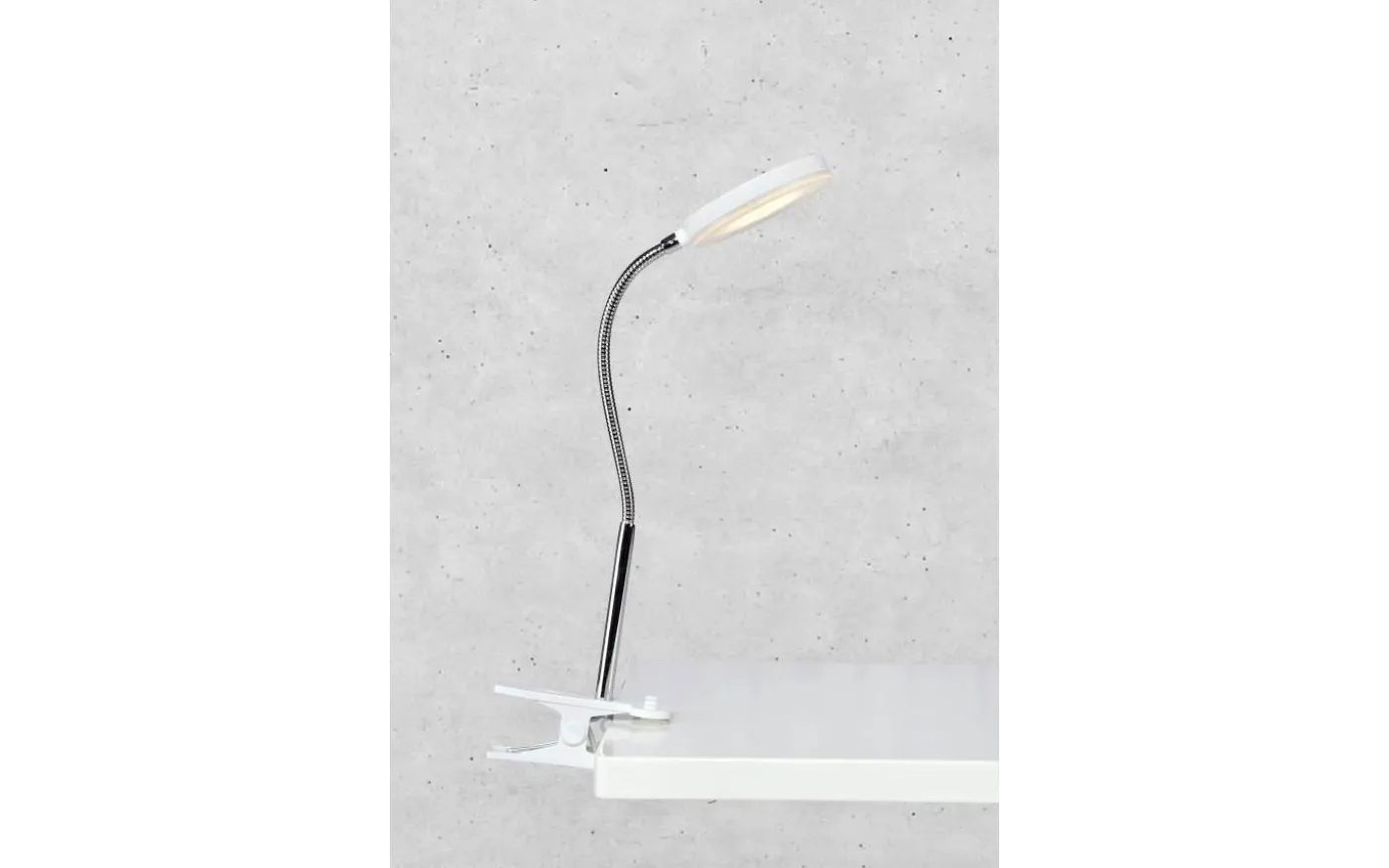 Tuff skrivbordslampa i färgad metall och krom. Lampan fästs enkelt och fräckt med sin klämma på skrivbordskanten och med sin justerbara hals ger den ljus precis där du vill ha det! Skrivbordslampan finns i två färger, välj mellan svart och vit.