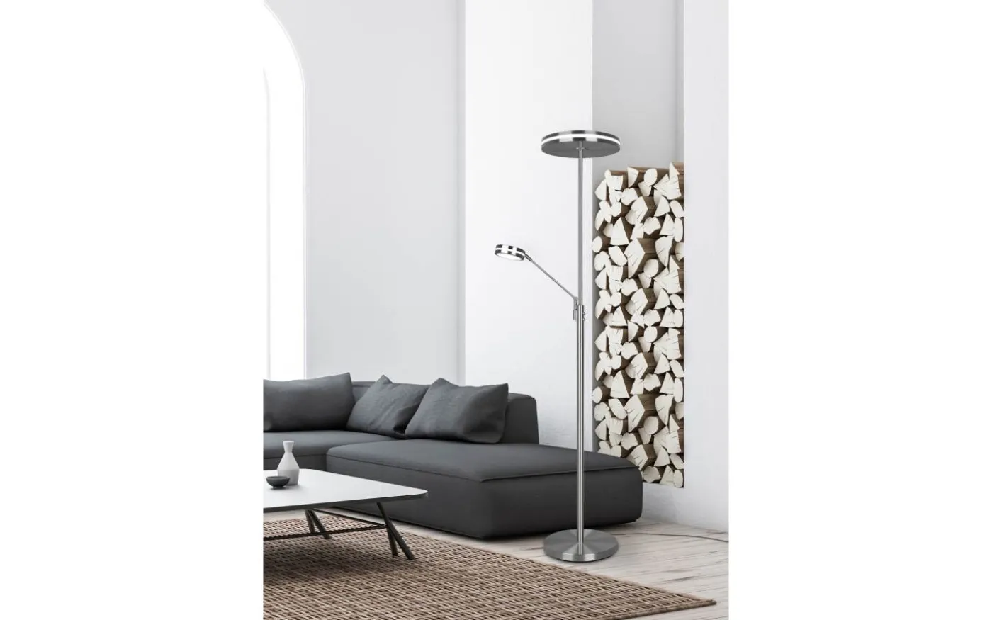 Praktisk, funktionell och snygg! FRANKLIN-lampan imponerar med sitt moderna, futuristiska utseende. Placerad bredvid soffan eller i hallen skapar golvlampan en behaglig ljusatmosfär tack vare en sensordimmer som kan användas för att steglöst justera ljusstyrka och ljusfärg. Två separata strömbrytare gör att huvudljuskällan och läsarmen kan användas separat. Tack vare den klassiska färgdesignen i matt nickel kan lampan kombineras med många inredningsstilar. Dessutom har armaturerna modern LED-teknik, vilket står för hög ljuskvalitet. LED-ljuskällor kännetecknas av lång livslängd och låg värmeutveckling. Ljuskälla: inklusive 1x SMD LED, 35W · 1x 4100lm, 2700+3200+4000K. Ljuskälla: 2 inklusive 1x SMD LED, 6,5W · 1x 650lm, 2700+3200+4000K. Extra information: Justerbar ljusfärg, Integrerad dimmer, IP20, Minnesfunktion, Sensordimmer, Separat omkopplingsbar
