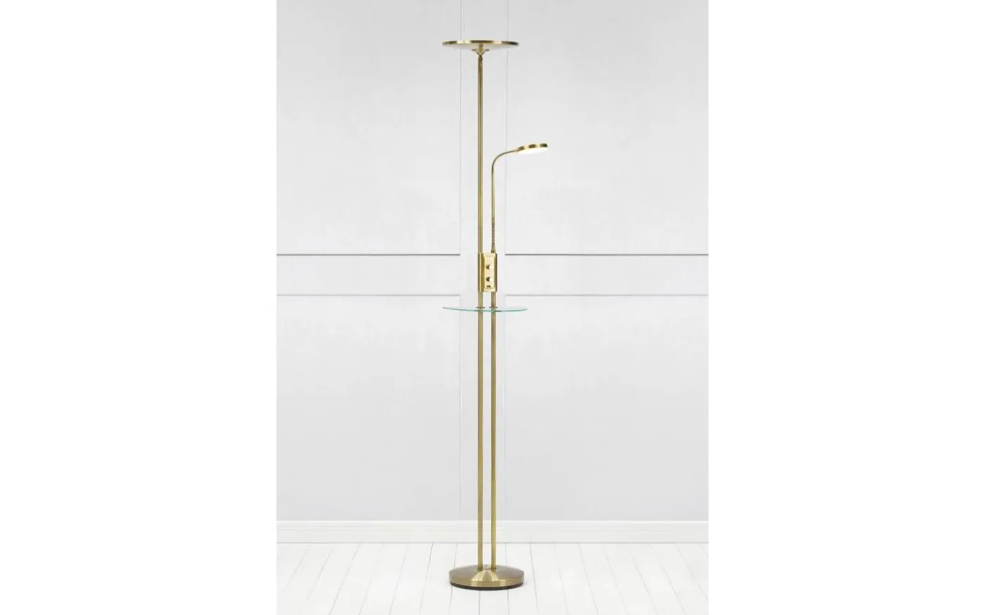 Golvlampan finns i två fina färger, välj din favorit av stål eller antik mässing.