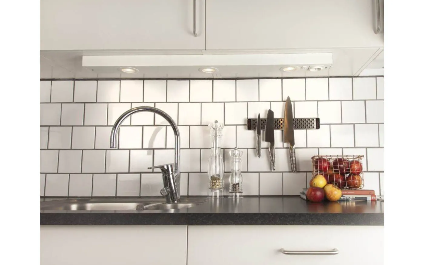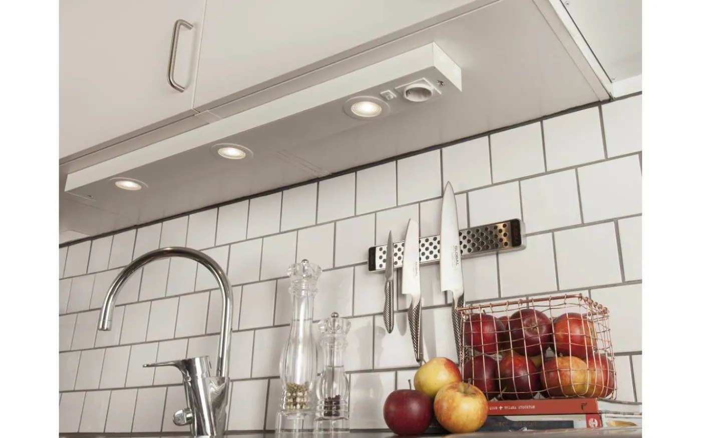 Komplett underskåpsarmatur med brytare och 230V-uttag. Vändbar front och nyckelhålsmontage för snabbt och enkel installation. Nytt LED-chip ger fördubblad ljusmängd jämfört med föregångaren och Comfortlinsen ger ett näst intill bländfritt ljus med mycket god färgåtergivning, RA>90. Passar som en energieffektiv ersättare för befintlig ljusramp eller i nyinstallation. Vitt utförande med två, tre eller fyra ljusutsläpp. Välj mellan 2700K eller 3000K.