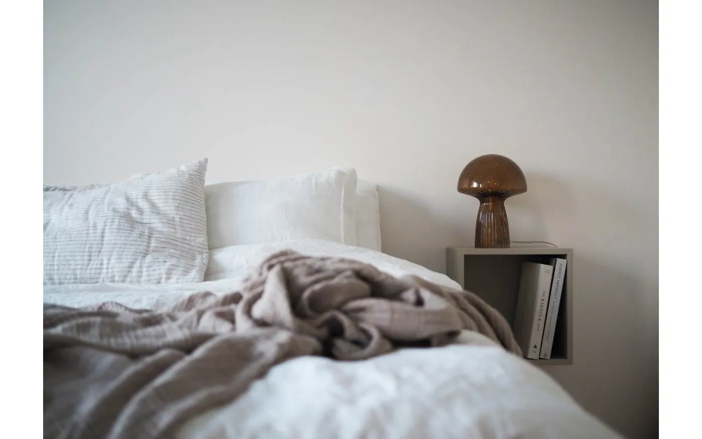 Fungo bordslampa från Globen Lighting är designad av GL Design Studio som med inspiration från skogen skapat denna nätta bordslampa avbildad som en svamp. Bordslampan är gjord av brunfärgat glas med räfflade detaljer på foten där räfflorna går hela vägen upp under hatten likt lamellerna på en skivling svamp. Bordslampan har en lamphållare i kontrasterande borstad mässingsfärgad metall och på glaset är där små vackra luftbubblor som ger en fin karaktär när lampan är tänd.