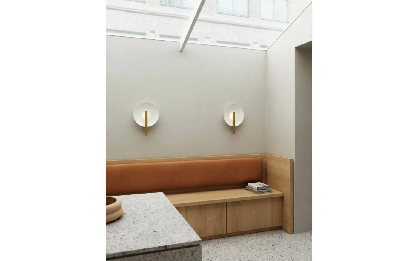 Furiko från Design For The People är en stilren och moden vägglampa. Bakom stången i mässing placerar du ljuskällan och ljuset får reflekteras på den vita metallskärmen och skapar ett mjukt och indirekt ljus.