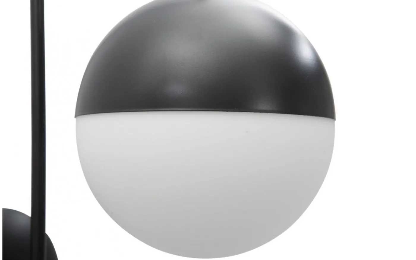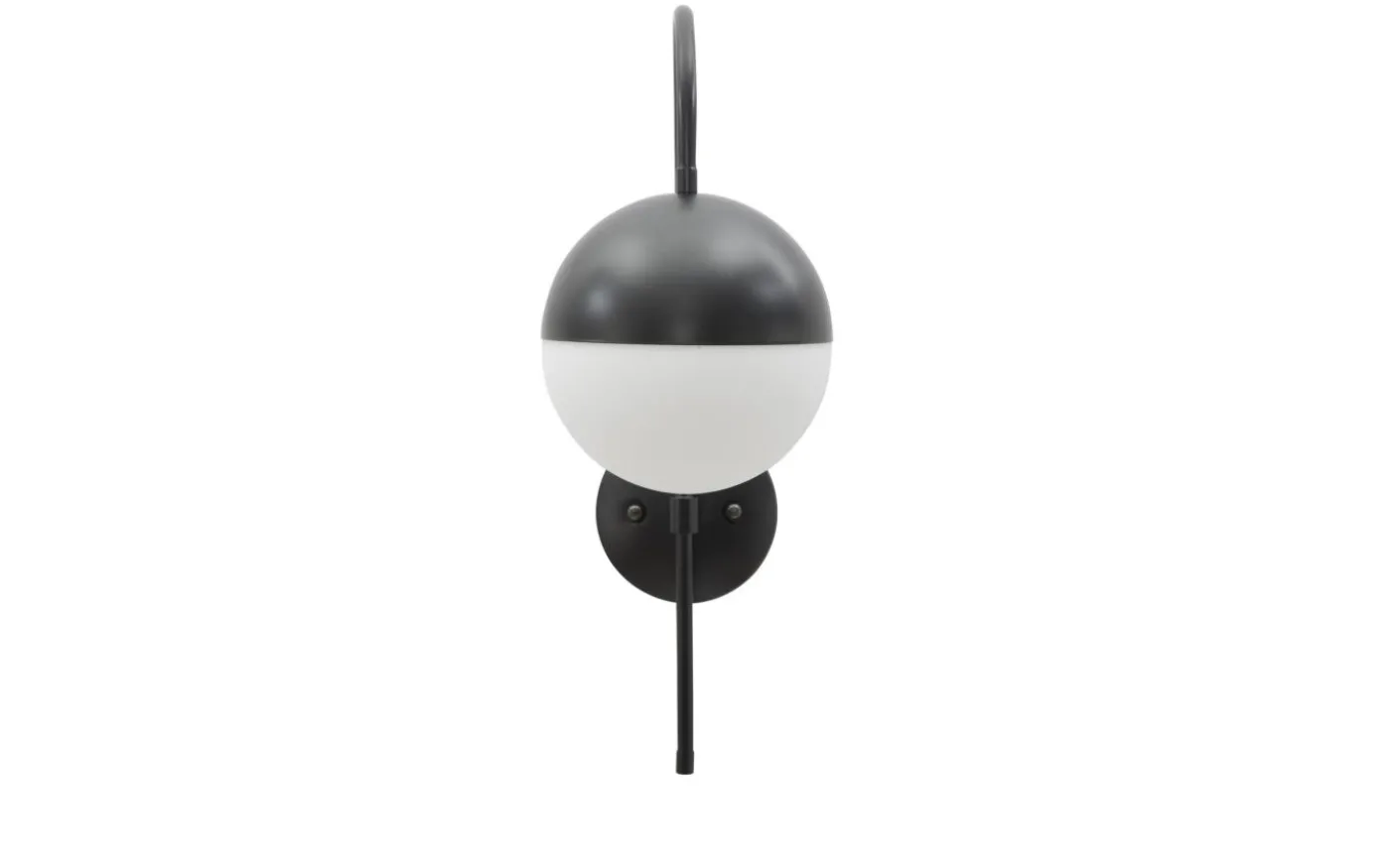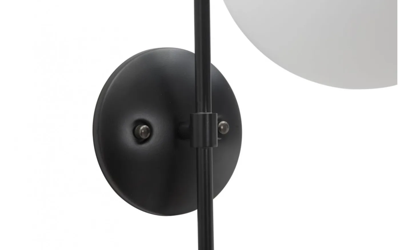 Svart metallvägglampa med vit glaskula. De väsentliga linjerna kombineras med elegansen i svart för att skapa en unik design.