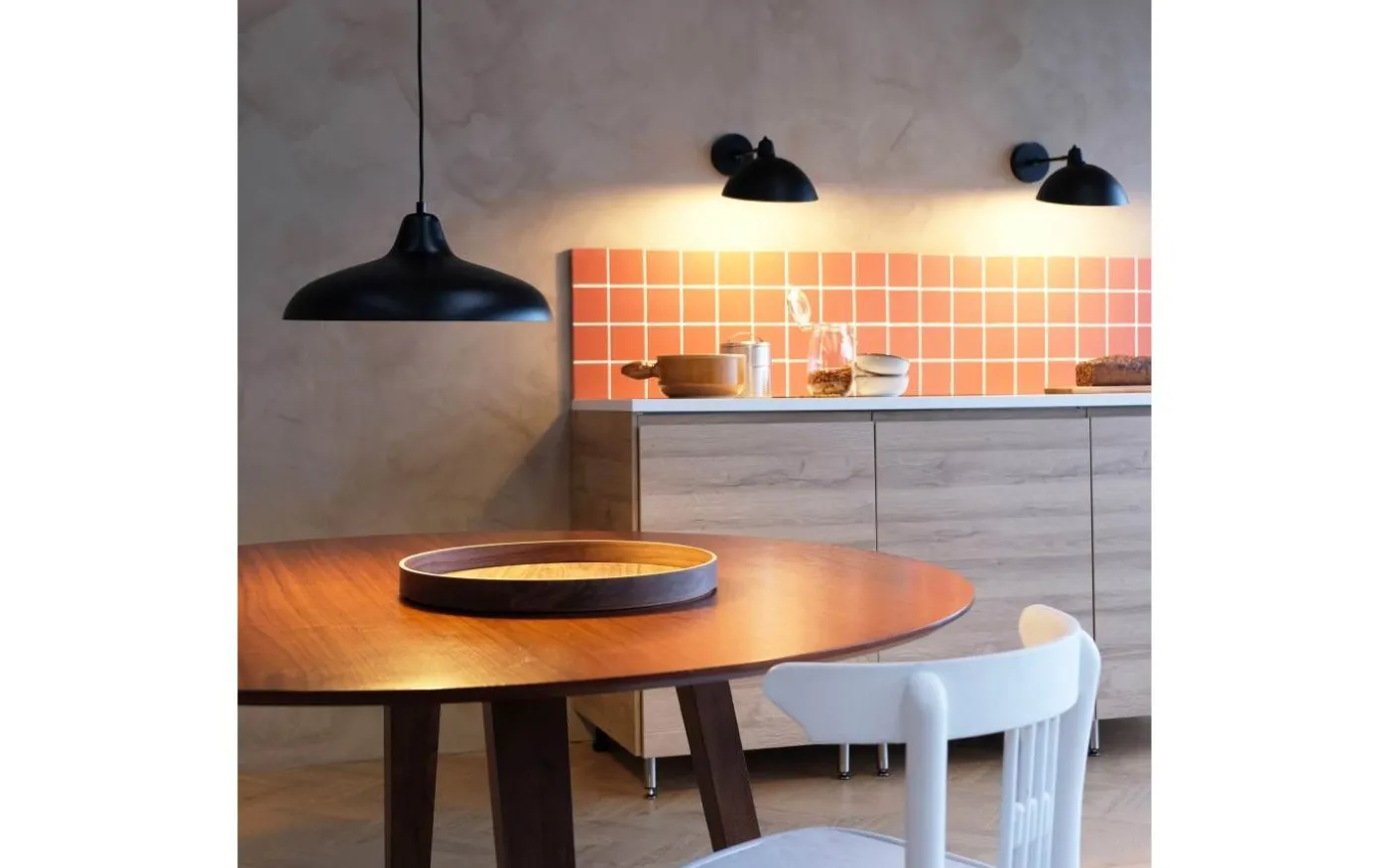Futura är en ny serie från Dyberg Larsen, där det futuristiska uttrycket blandas med den moderna designen. Färgen svart i kombination med vit innerskärm, gör att lampan ”kastar” mycket ljus tillbaka igen. Vägglampan har på/av-knappen på skärmen så att ljuset lätt kan tändas. Tygsladden stödjer helt enkelt lampans uttryck. Skärmen kan dras ut från väggen och skärmen kan vridas. Vägglampan levereras med en 2 meter tygsladd. Lampan är vit inuti skärmen.