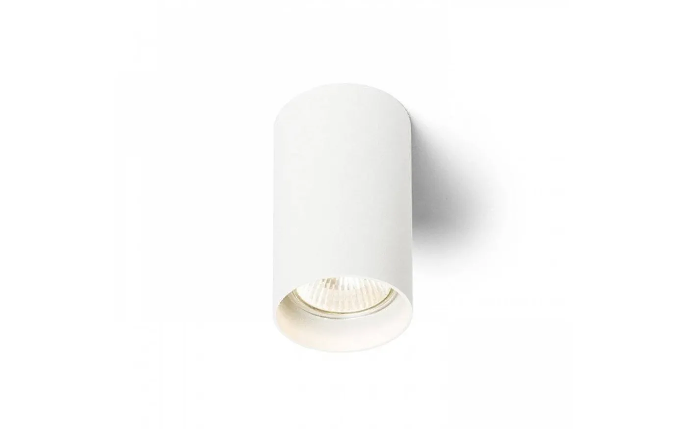 Cylinderformad ytmonterad taklampa för en fast ljuskälla med GU10-fattning.