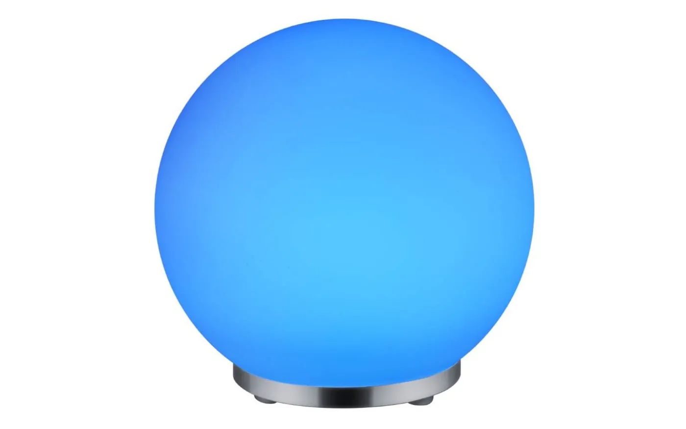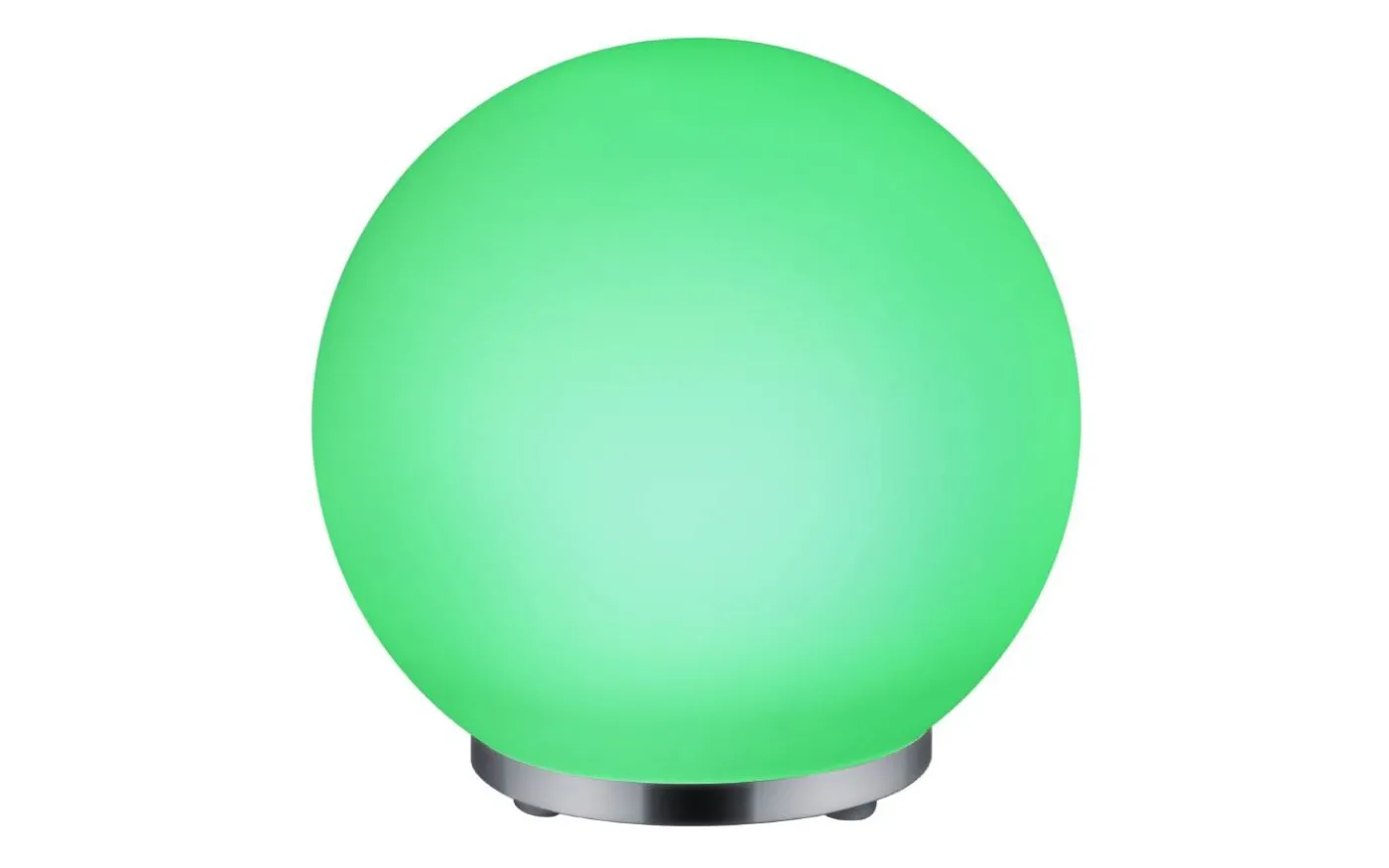 Bordslampan skapar en mysig atmosfär. Oavsett i vilket vardagsrum du placerar GEORGE-bordslampan blir den ett riktigt blickfång. Den lilla lampan imponerar med sin fantastiska färgeffekt och frammanar fina accenter. Den sfäriska lampskärmen är tillverkad av torkat glas och är monterad på en krombas. RGBW-ljuskällan kan ställas in på olika färger och vitt ljus samt dimmas med den medföljande fjärrkontrollen. Förtrolla bord, hörnbänkar, byråer och mycket mer med ljus efter dina önskemål. GEORGE har en diameter på 20 cm och avger 430 lumen med en ljusfärg på 3000 Kelvin. Ljuskälla: inklusive 1x SMD LED, 5,5W · 1x 430lm, 3000K. Extra information: Integrerad dimmer, fjärrkontroll, RGBW-färgväxling