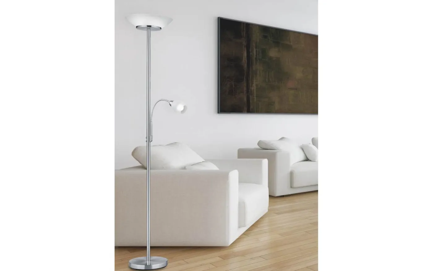 Enkel design och tidlös modernitet. GERRY-strålkastaren erbjuder många användnings- och kombinationsmöjligheter. Helst bör armaturen placeras bredvid soffan, eftersom en flexibel läsarm säkerställer bästa möjliga ljusresultat utöver takwashern som huvudsaklig ljuskälla. Denna kan riktas riktat så att önskat ljusmönster kan väljas fritt. Strålkastaren har en höjd på 180 cm och en diameter på 34 cm. Tack vare den klassiska färgdesignen i matt nickel kan ljuset kombineras med många inredningsstilar. För energibesparande belysning rekommenderas att använda en LED-lampa. Dessa är ett optimalt alternativ till konventionella halogenlampor och står för hög ljuskvalitet och energibesparingar på upp till 80 %. Dessutom hjälper LED-lampor dig att dra nytta av lång livslängd, låg värmeutveckling och samtidigt skydda miljön. Ljuskälla: exklusiv 2x E27 · max. 18W. Ljuskälla: 2 exklusiv 1x E14 · max. 10W. Extra information: Flexibel, IP20, Lampa(or) ingår ej, Separat omkopplingsbar, Strömbrytare