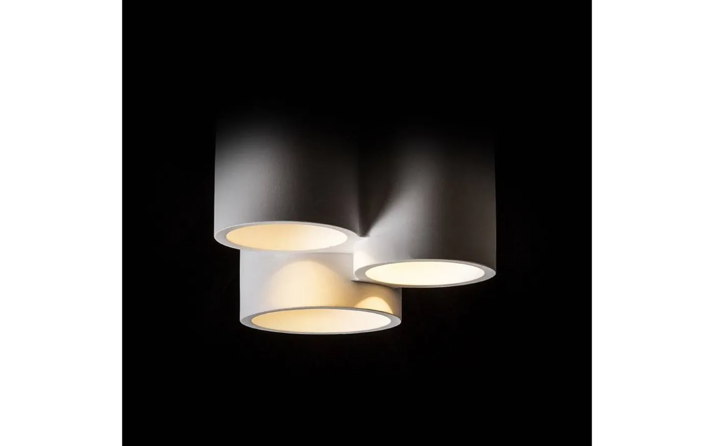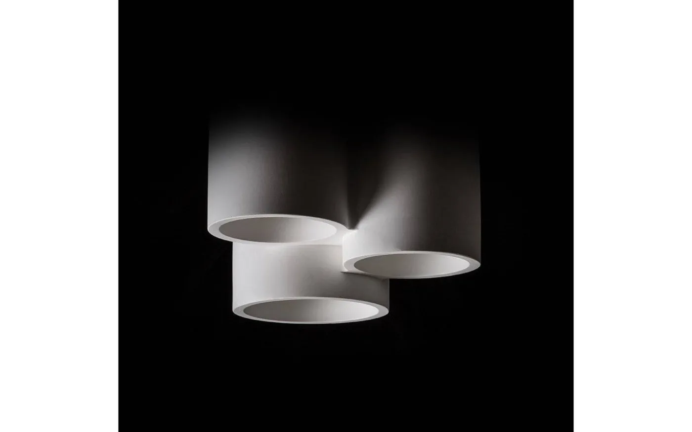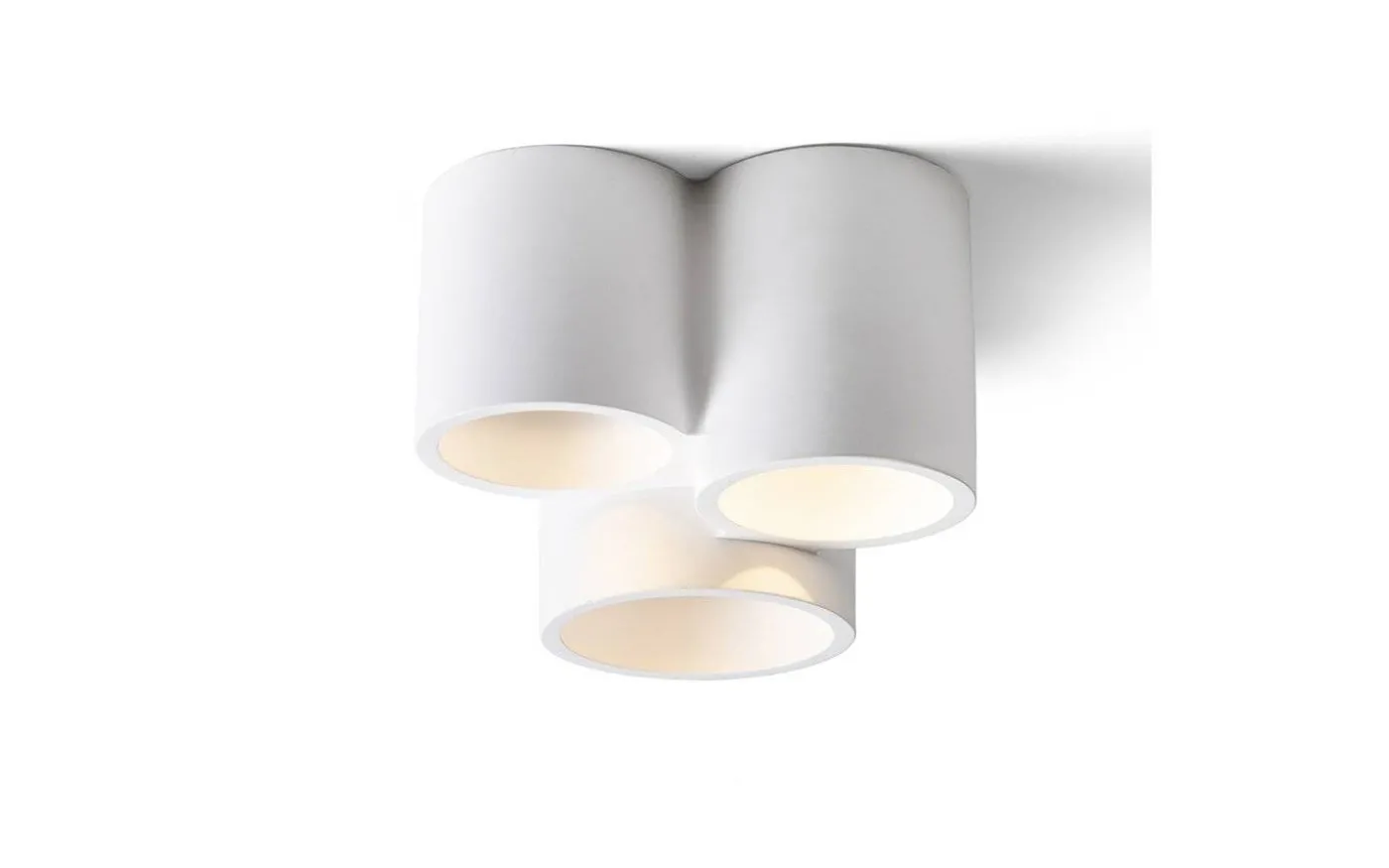 Gina taklampa från Rendl Light Studio är en triangelformad taklampa i gips med 3st cylinderformade pelare i olika höjder för en mer lekfull design. Lampan går att måla med helt vanlig väggfärg.