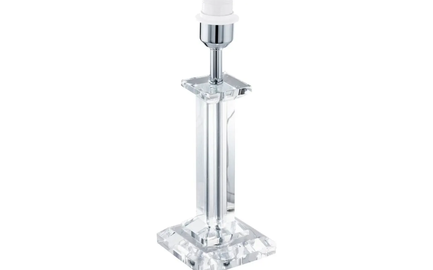Denna bordsarmaturfot från serien GLASBURY är gjord av klar kristall och förkromat stål och manövreras av en kabelbrytare. Den har skyddsisolering och är utrustad med E27-sockel.