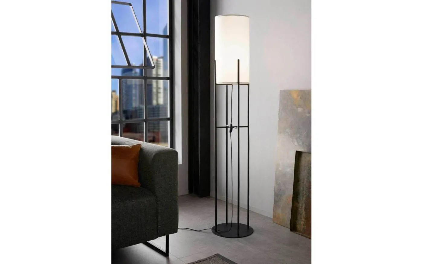 Glastonbury golvlampa från Eglo är en elegant och stilfull golvlampa med stomme av svartlackerat stål som pryds med en härlig vit textilskärm.